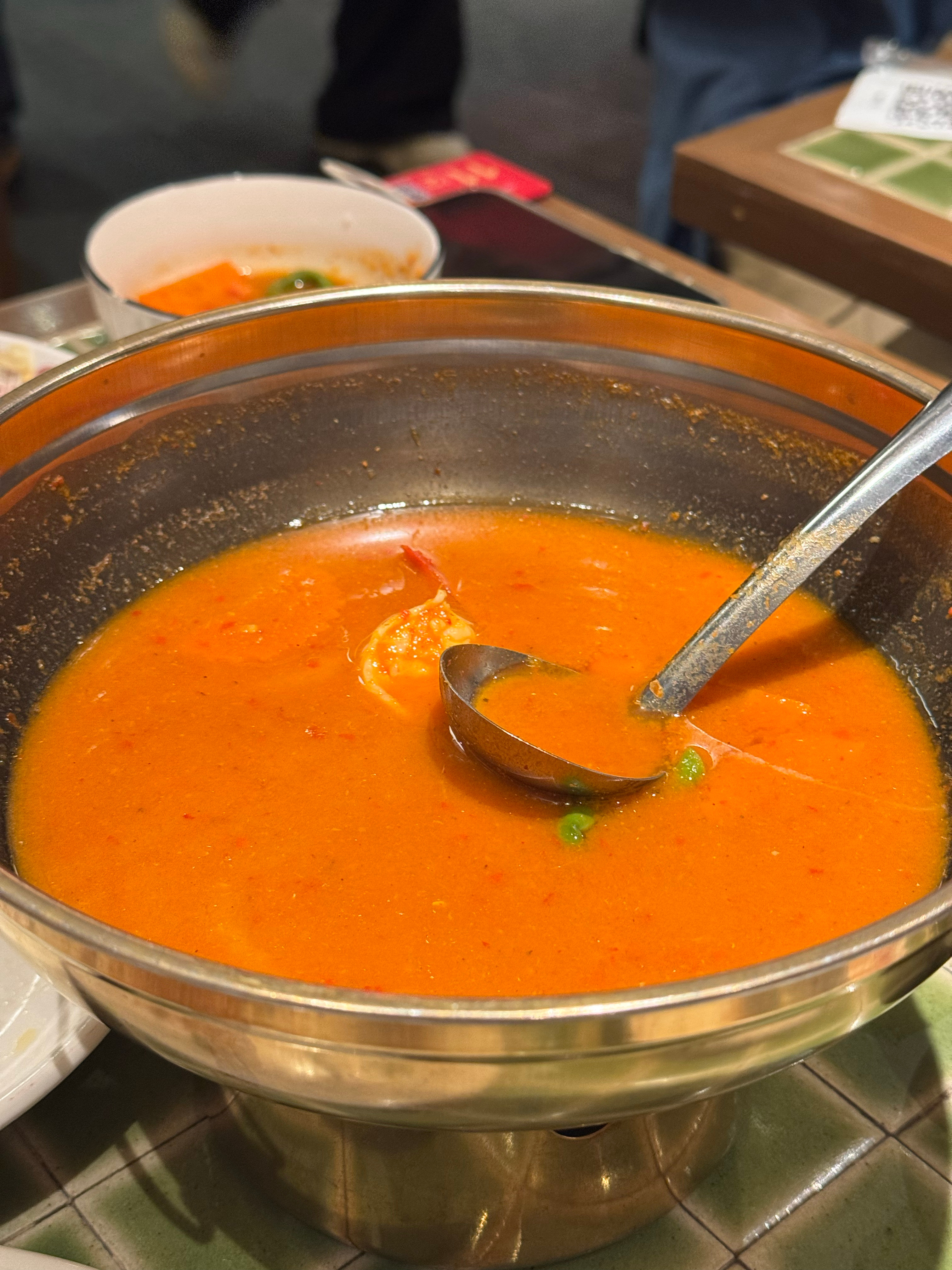 第一天来泰国,朋友推荐的打抛饭,我是真没想到泰国吃这么辣,把我一个江西人辣到肚子疼。然后今天晚上,我们吃的这家店,其他三都挺好吃,就是这个汤,又给我辣到肚子疼,泰文看不懂,也不知道这玩意这么辣啊建议点单的时候多说一句微辣。