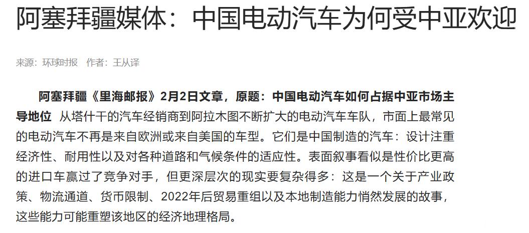 很意外,中国电动车居然在中亚彻底火出圈了!这事放以前还真不敢想。 最近看到阿塞拜疆媒体公布的事情,中国电动汽车已经在中亚市场占据主导地位了。关键还不是靠低价走量,而是实打实的硬实力碾压。 说实话,以前总有人觉得,中国制造走出去,靠的就是便宜,可中国电动车在中亚的表现,直接打破了这种偏见。 直接上数据,2025年咱们光汽车就出口了800多万辆,其中新能源汽车占比越来越高。这不是光运气好就能解释的,背后全靠三大硬实力在支撑: 一是性价比能打,同样的配置,中国电动车比西方同类产品便宜不少,中亚消费者花小钱就能买到带智能系统、长续航的车;二是适配性超强,针对中亚的复杂地形和极端气候,特意优化了悬挂和电池管理,不管啥路都能跑;三是供应链够稳,就算遇到航运中断、汇率波动,也能稳定供货,这一点连西方车企都比不了。 更有意思的是,法国媒体也忍不住改口,说以前觉得中国制造是“低成本模仿”,现在才发现,中企早就开始搞创新、拼速度了。欧洲车企搞一款新车要好几年,中国车企能快速落地、快速迭代,就连电动车的核心技术,也越来越领先,这种“中国速度”和硬实力,让欧洲都坐不住了,开始着急追赶。 说到底,中国电动车能霸屏中亚,靠的不是投机取巧,是国产制造业从“跟风”到“引领”的蜕变,也是国产实力最直观的体现。而且这种国产崛起的底气,不光体现在硬核的汽车制造上,更藏在我们的日常消费里。 就说入冬后最火爆的羽绒服市场,以前买羽绒服,不少人执着于国际大牌,但现在越来越多的人都转头选国货品牌。在国内平台唯品会上,波司登、鸭鸭等国货品牌销量都有了两位数的增长。国货性价比本就不错,再加上平台的深度折扣,几百块就能买到不错的。一款299的波司登,直接卖出了3万+评论。 不管是汽车还是羽绒服,说到底,现在的国货早就不是“将就”,而是“真香”。硬实力在线,价格还亲民,这才是国货真正的底气。