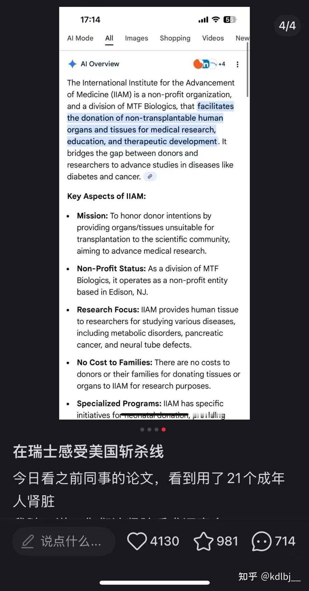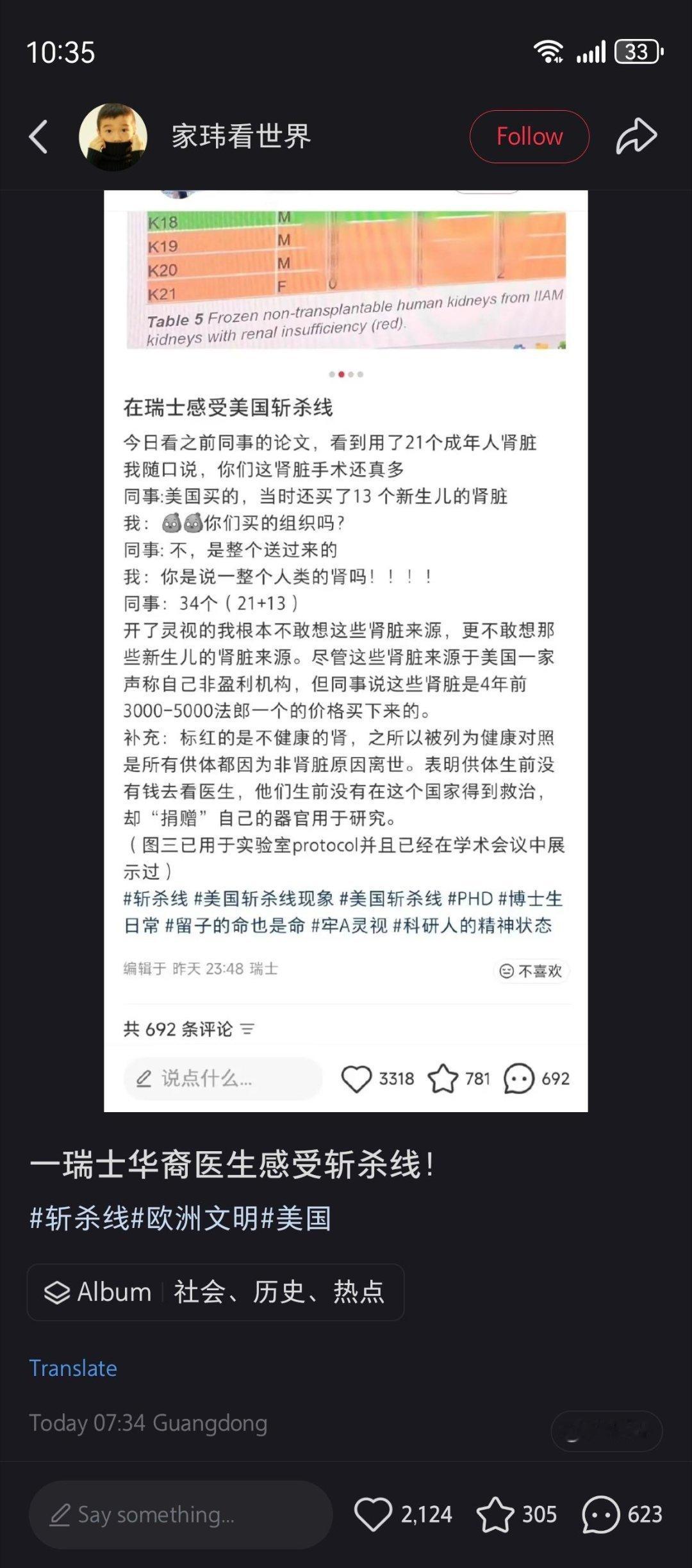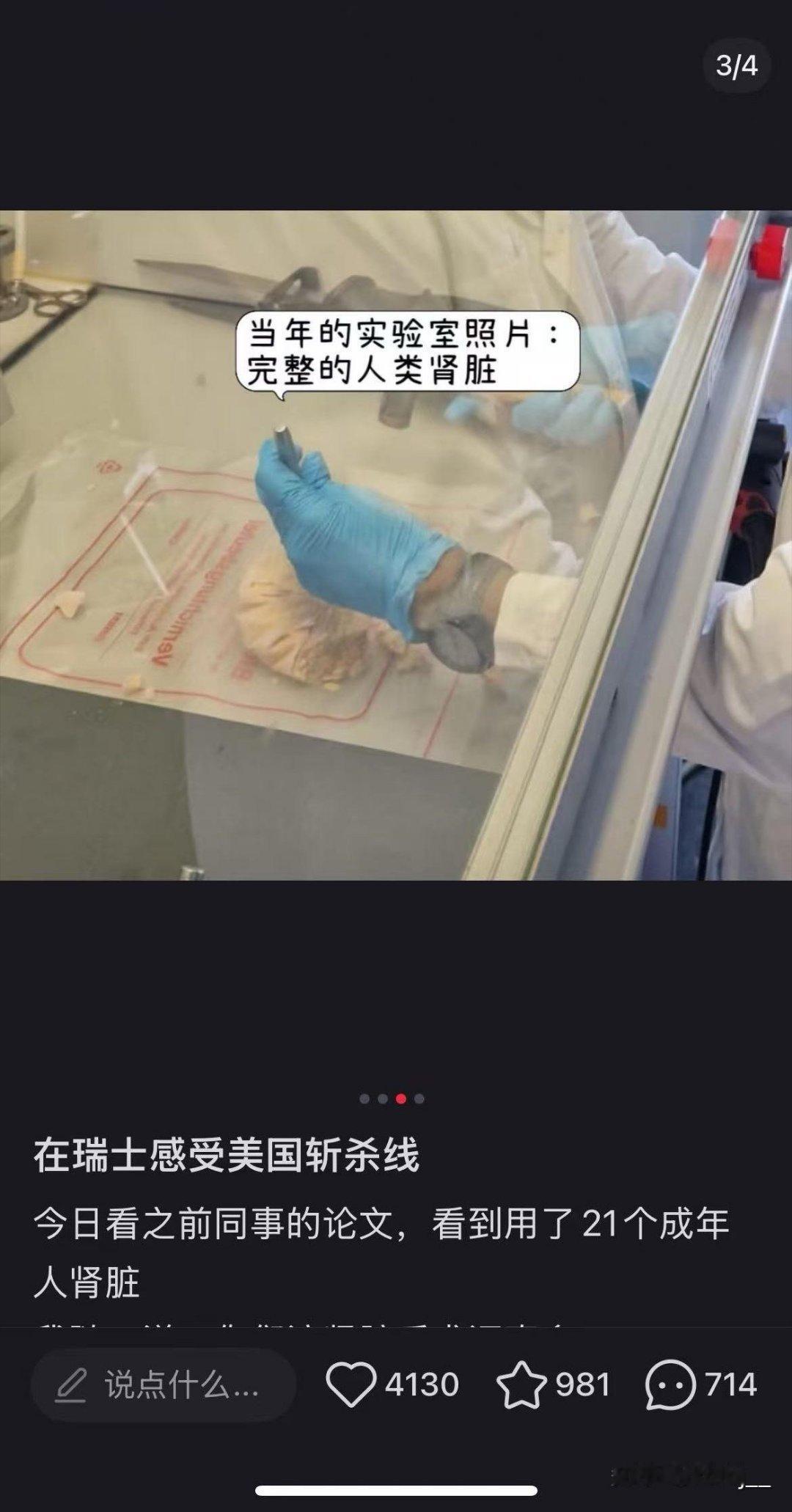 一位在瑞士就读的女性华人医学生在实验室里发现,团队用于研究的34个人体肾脏(包括21个成年人肾脏和13个新生儿肾脏),是四年前以3000-5000法郎的单价,从美国一家“非盈利机构”购得。