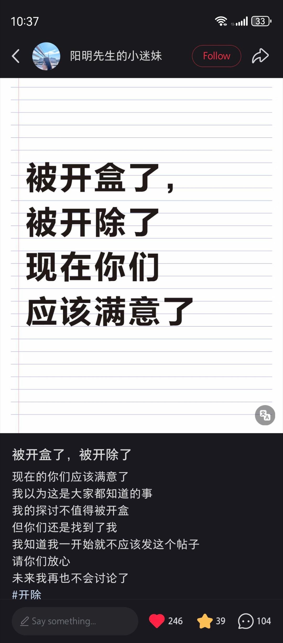 这位博主将这种现象来证明“斩杀线”,直指西方医疗体系对底层生命的漠视。然而,帖子发出仅一天,她就被人“开盒”,并被所在实验室直接开除。