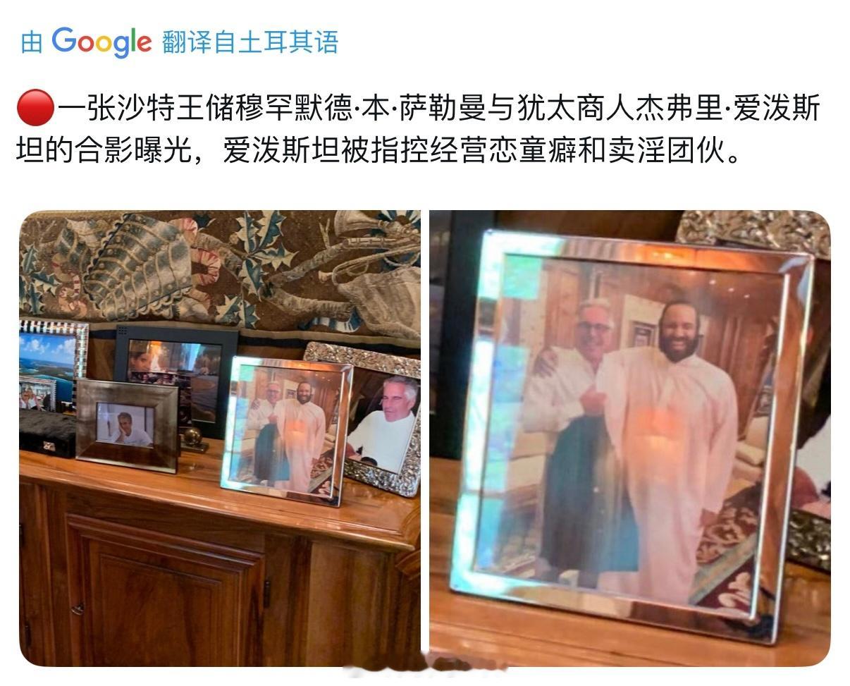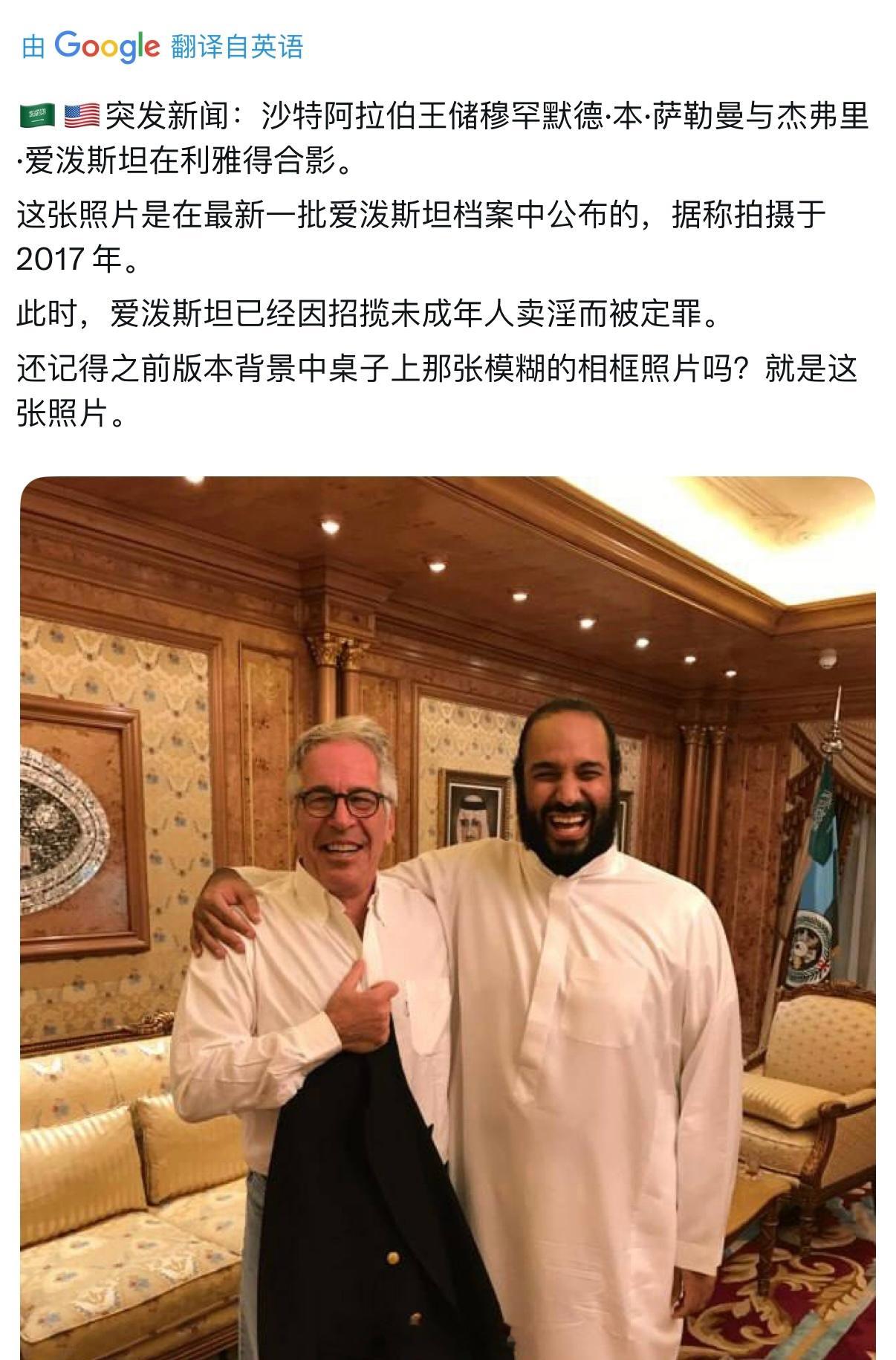 最新一批爱泼斯坦档案曝光之前在爱泼斯坦豪宅书桌上那张和沙特王储本萨勒曼的合影原图
