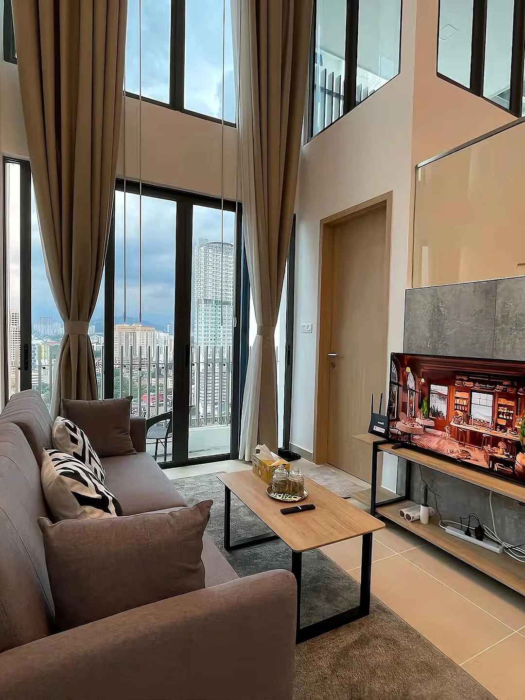 真的太值了,大楼的设施都很高级,尤其是被种草了很久的无边泳池,这个位置特别正,一边游泳一边就能欣赏吉隆坡塔和双子塔等等必打卡的建筑,晚上的时候双子塔亮起灯光,活像个大水晶,房间很大,1楼的客厅有一整扇大落地窗,风景特别好,门口还有一个小露台,房东还很贴心的放了2把椅子,下午的时候坐着喝喝下午茶真的很惬意