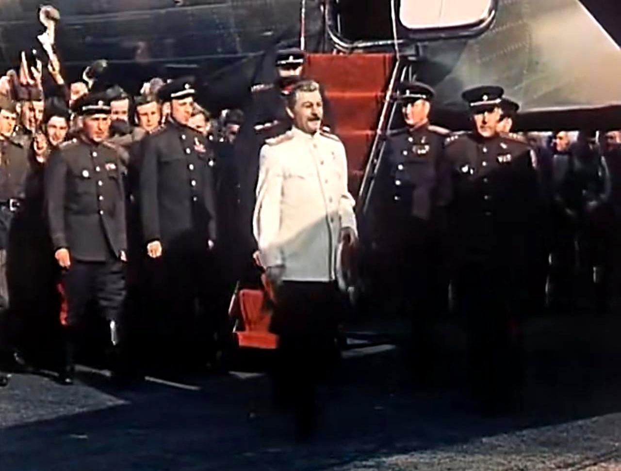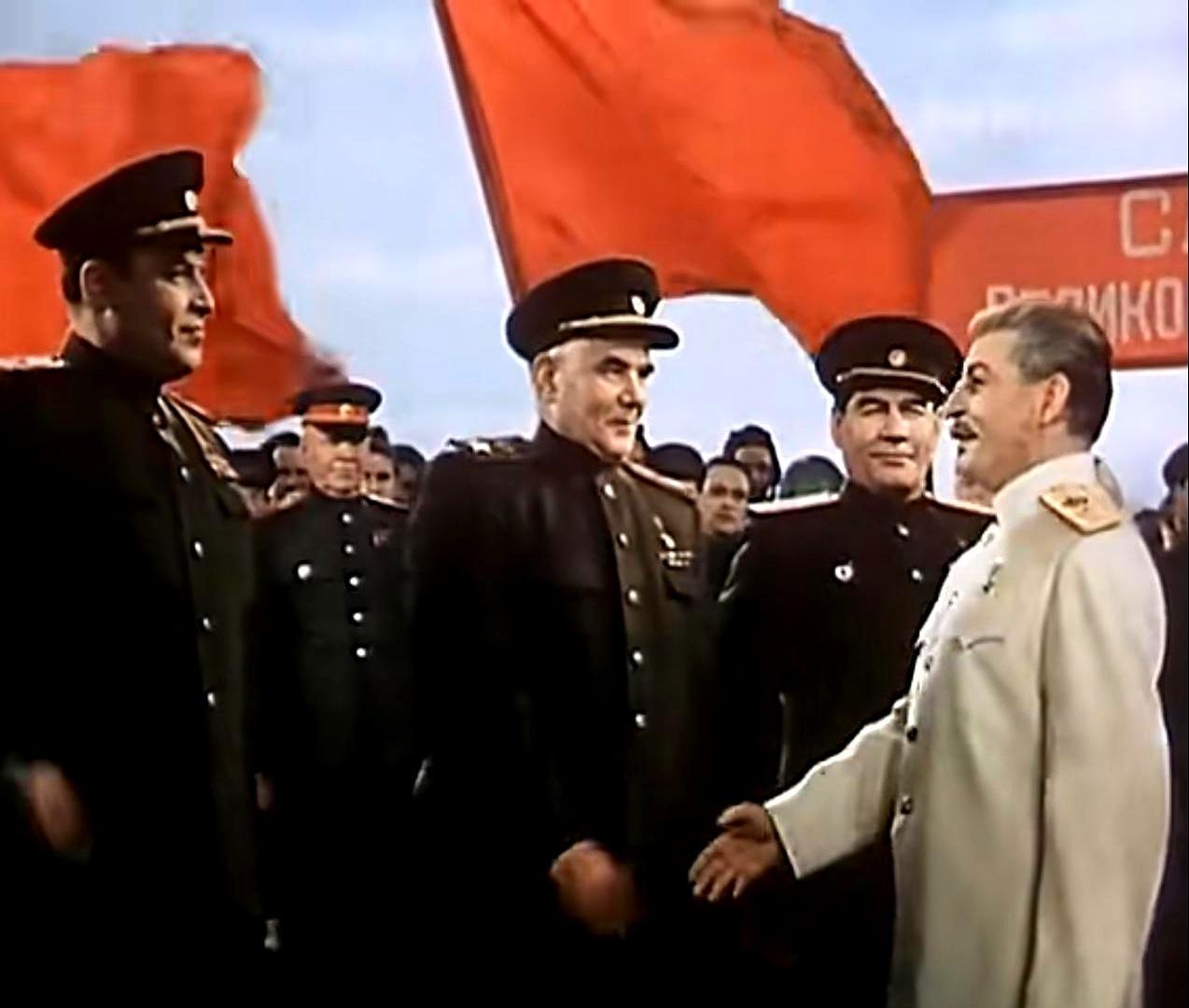 骗了全世界70年,斯大林攻克柏林全靠一部电影。 斯大林身穿白色元帅服,从飞机上走下。柏林机场,人山人海,红旗招展。苏军元帅们列队迎接,男女主角献上鲜花,全世界都在欢呼。 但这一切,全是假的。斯大林这辈子就没坐过飞机,更没踏足过柏林一步。这场戏,从头到尾都是导演拍出来的。 这部叫《攻克柏林》的电影,是给斯大林70岁的献礼。导演是他的御用,剧本他亲自审。目的只有一个,把他塑造成唯一的战争救世主。 真正指挥柏林战役的朱可夫,电影里连个影子都找不到。所有的功劳,都堆在了斯大林一个人身上。 最讽刺的是,斯大林自己看完这部电影,感动到流泪。他跟导演说:我真去过柏林就好了。连他自己,都差点被这精心编织的幻觉骗了。 历史真正可怕的,不是被篡改,而是篡改它的人自己都信了。