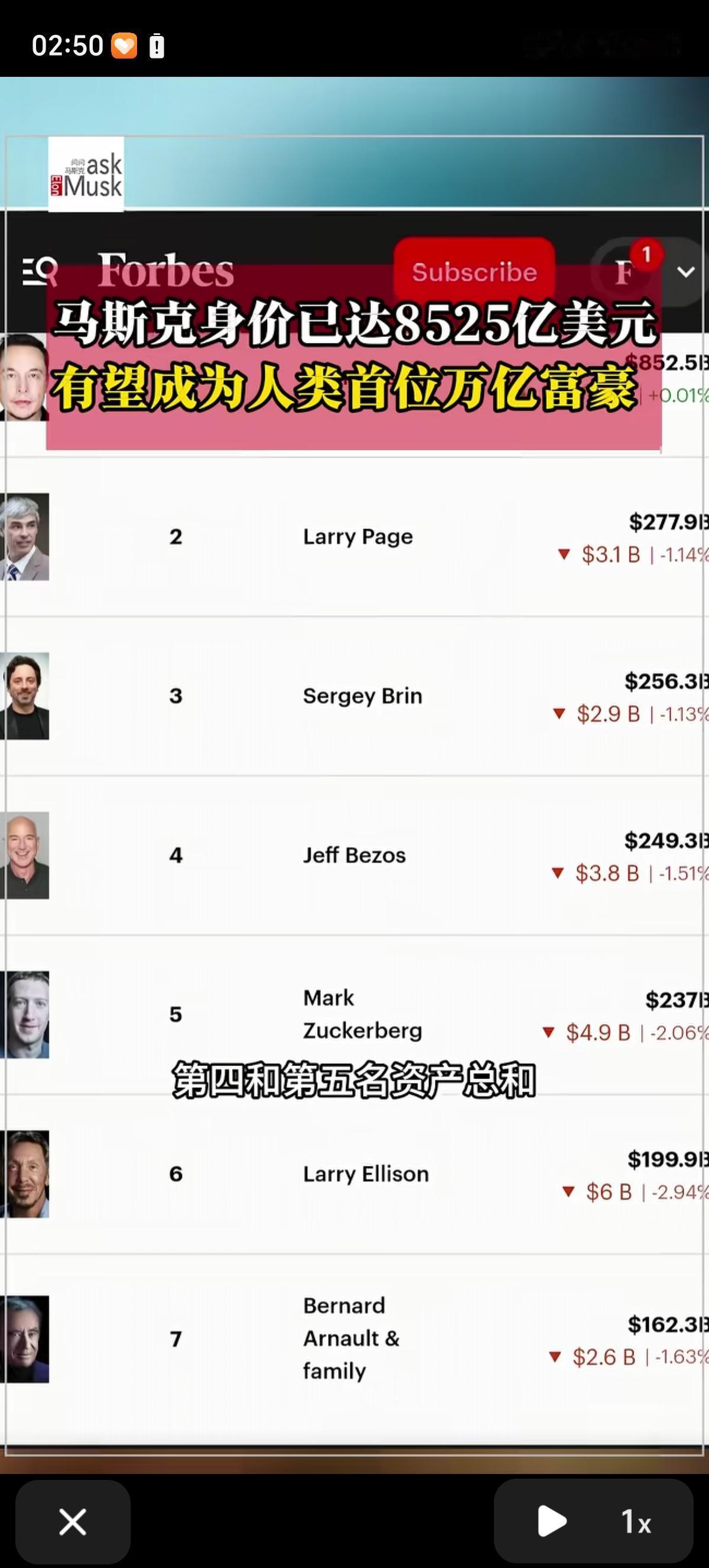 马斯克的个人净资产达到了8525亿美元,等到2026年SpaceX上市后他将成为