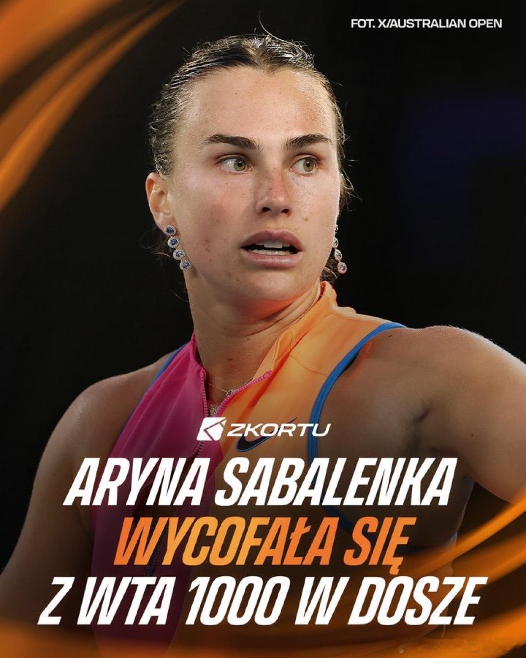 萨巴伦卡🇧🇾宣布退出多哈赛!官方消息!!!世界排名前25的选手中已有6位退出
