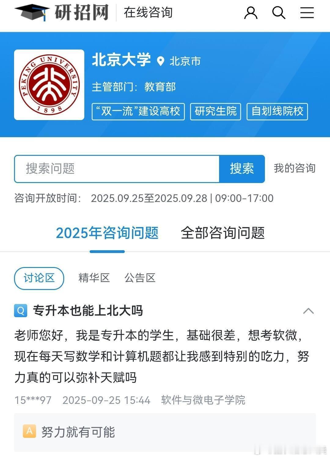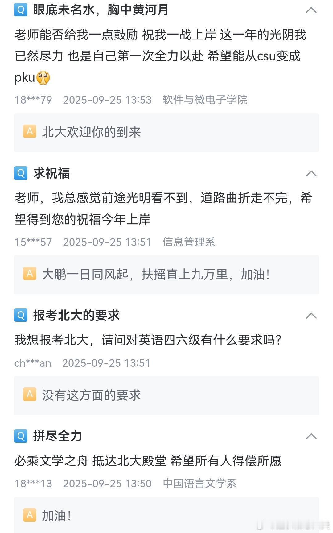 北大的老师真的有在认真回复每位考研人