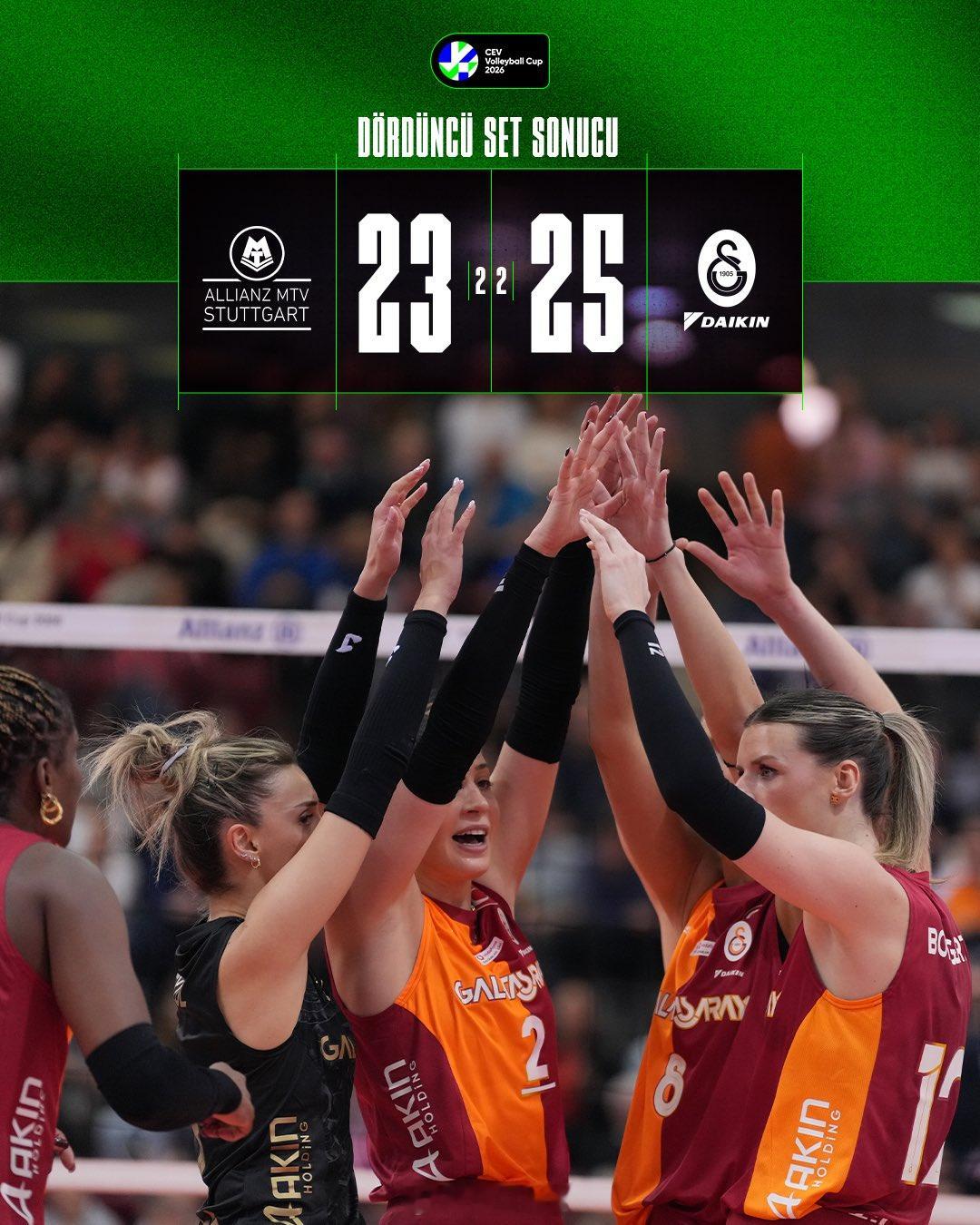 2026女排欧联杯 附加赛次回合,加拉塔萨雷在客场与斯图加特的比赛先输两局、连扳两局,目前与对手打成2-2(23-25, 23-25, 25-21, 25-23)平,至少获得1分积分,已经晋级八强。王媛媛 在前四局获得13分(14扣9中0失误1被拦、拦4)。
