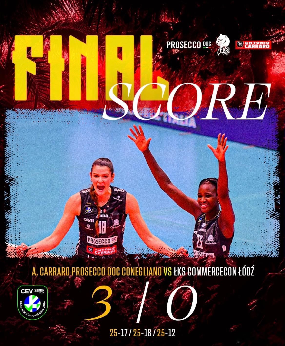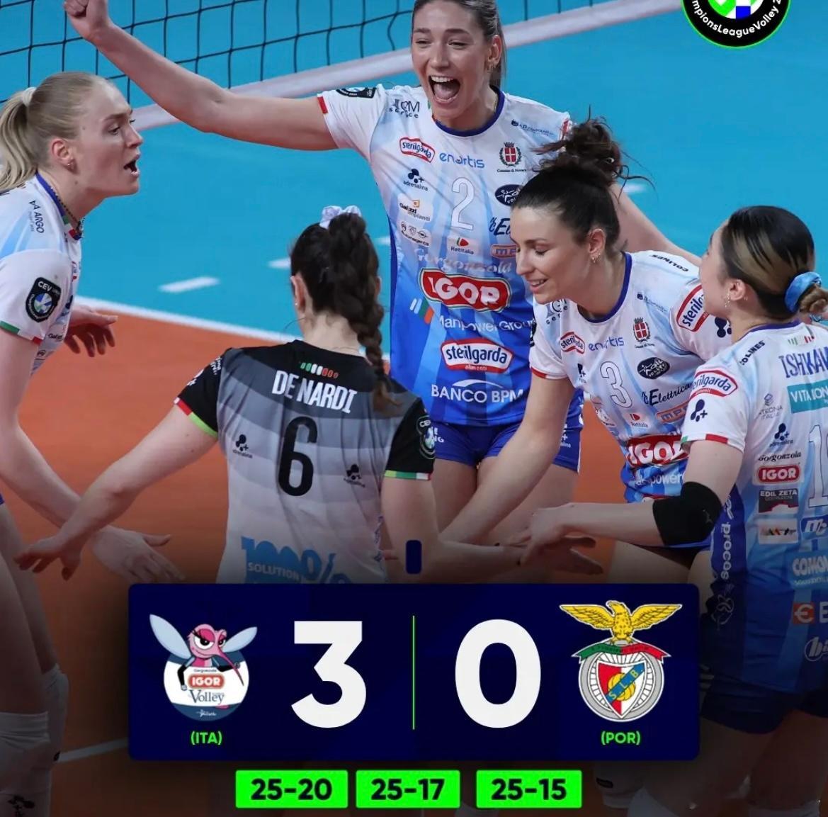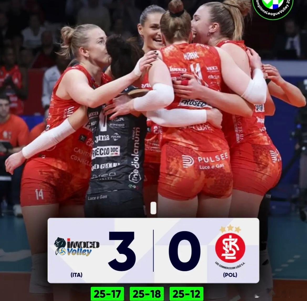 科内利亚诺3-0罗兹LKs诺瓦拉3-0普罗夫迪夫女排欧冠世界女排新闻朱婷留洋第七季