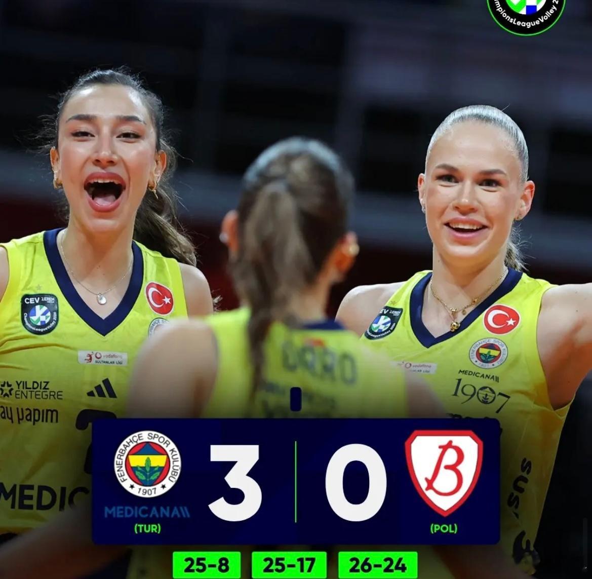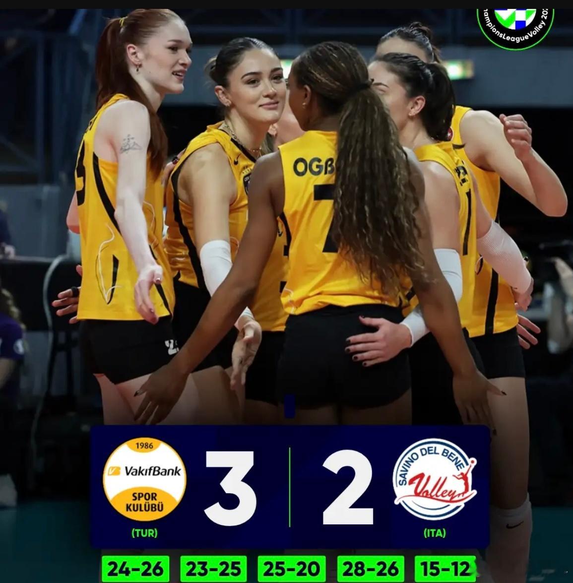 【女排欧冠小组赛几场赛况】关键战役土耳其队伍取得全胜瓦基弗银行3-2斯坎迪奇,双杀;伊萨奇巴希3-2米兰,也双杀;费内巴切3-0罗兹建设