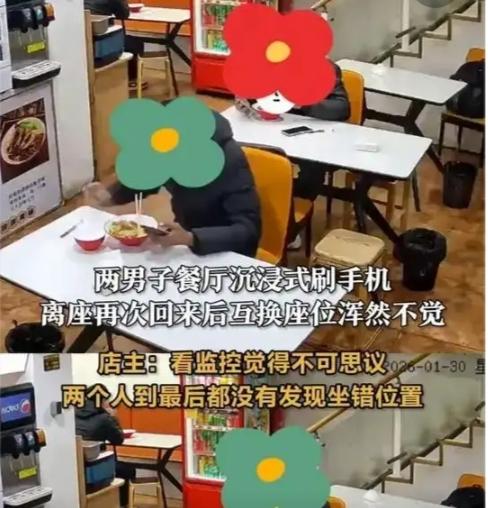 安徽俩男子互换座位吃错饭:我们都活成了手机的奴隶 安徽合肥一家猪脚饭店,上演了一幕让人笑到肚子疼又细思极恐的荒诞剧。 两位陌生男子邻桌就餐,全程低头刷手机,连打汤时眼睛都黏在屏幕上。回来后竟鬼使神差互换座位,更绝的是,两人把对方碗里的饭吃得干干净净,全程毫无察觉,直到其中一人找手机,老板才道出真相。 更巧的是,两人点的都是同款猪脚饭,分量、摆盘几乎一样,这场“错位干饭”堪称天衣无缝。得知真相后,两人尴尬一笑,老板更是大方表示下次免单,看似一场无伤大雅的闹剧,却戳中了当代人最扎心的痛点。 我们何尝不是如此?地铁上、餐桌前、聚会里,人人都是低头族,手机成了身体的“外挂器官”。我们在虚拟世界里侃侃而谈,却对身边人视而不见;我们刷着别人的生活,却弄丢了自己的真实。 有人说,世界上最遥远的距离,不是生与死,而是我坐在你对面,你却在刷手机。这场吃错饭的闹剧,不过是我们被手机绑架的缩影。当我们连吃饭、走路都离不开屏幕,又何时才能真正抬起头,看看身边的风景,感受真实的人间烟火? 别让手机偷走你的生活,别让虚拟取代现实。毕竟,热气腾腾的饭菜,远胜过冰冷的屏幕;身边人的笑脸,比网络上的段子更治愈。 你有过因为刷手机闹出过的糗事吗?评论区聊聊,让我们一起找回被手机偷走时光。美食互换挑战 交换座位 #互换座吃错饭