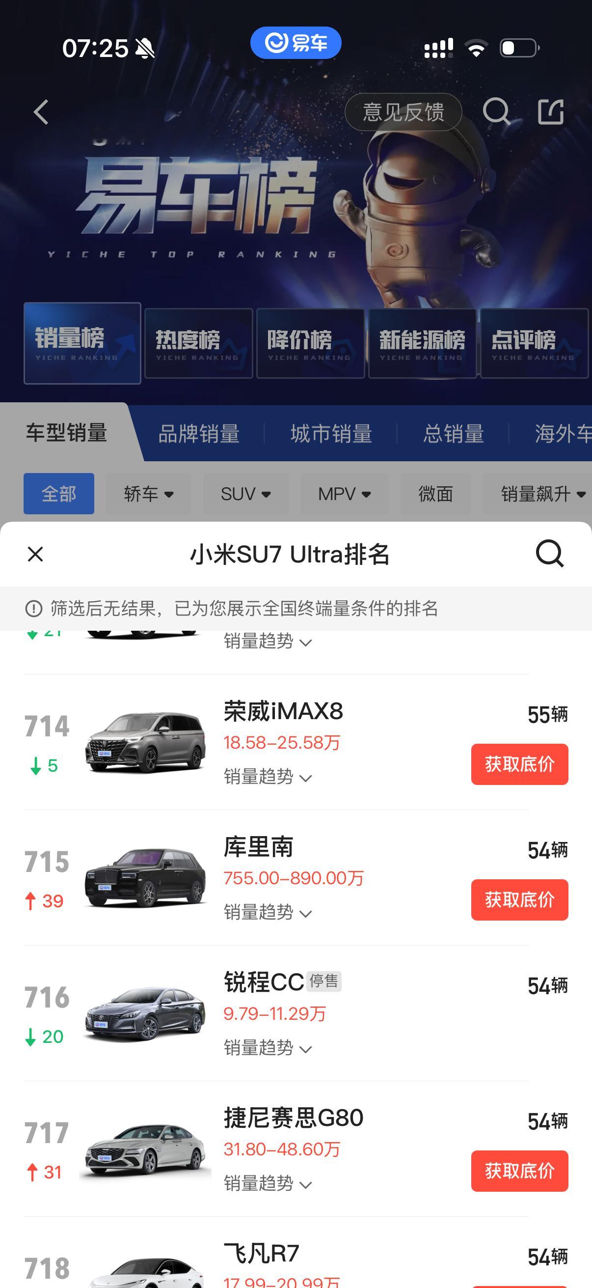 小米SU7Ultra专属销售团队解散看销量就能知道是不得不解散盲目招聘那么多超豪品牌的销售过来。实际上一个月的销量还没卖过宾利飞驰混动版本还没卖过库里南要我是雷总,那我也得解散。小米是一个店至少有一名Ultra Master小米汽车目前全国门店接近500家。这一个月的专属销售底薪估计就得发出500-1000万。然后一个月卖不到100台车。让谁来谁都会关闭这个团队。小米汽车汽车资讯大v聊车