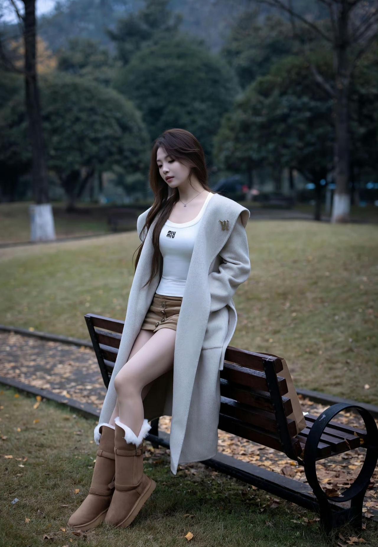 这套穿搭是秋冬出街的范本!浅色系长款大衣温柔又有松弛感,内搭简约白T+短裤刚好,配上雪地靴保暖又显随性,和秋日公园的氛围适配度满分~灰色系大衣穿搭 温柔系大衣搭配 秋冬穿搭