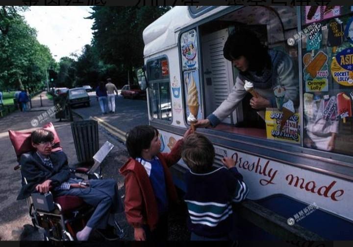 人有什么都不能有病,看霍金得病前一副意气风发的样子,他和友人一同饮酒姿势潇洒。患病后的他生活都不能自理,他儿子小小年纪都学会照顾他了,图三是他儿子为他买冰淇淋。