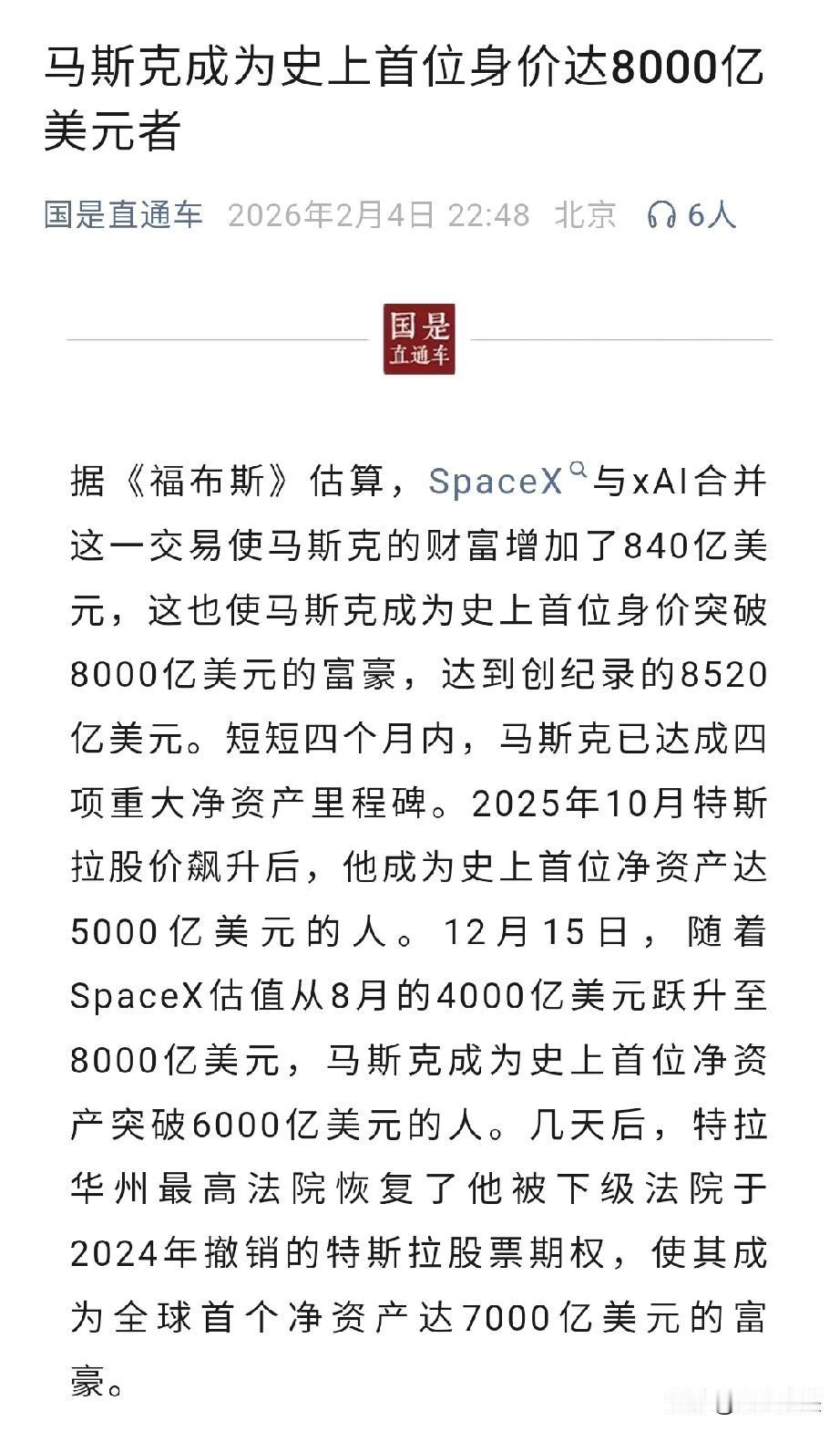 马斯克身价突破了8000亿美元,达到了恐怖的8520亿美元,按最新汇率换算的话,其身价接近60000亿人民币! 用一台高速点钞机数百元大钞,一分钟能数1000张,数一亿的话需要16.5个小时,要数完60000亿的话大概需要不停工作99万小时,大概是4万多天。 马斯克要想在有生之年数一下自己的钱到底有多少,得多找几台点钞机才能完成! 人一辈子不过才三万多天,马斯克的钱不光花不完,数都数不完!
