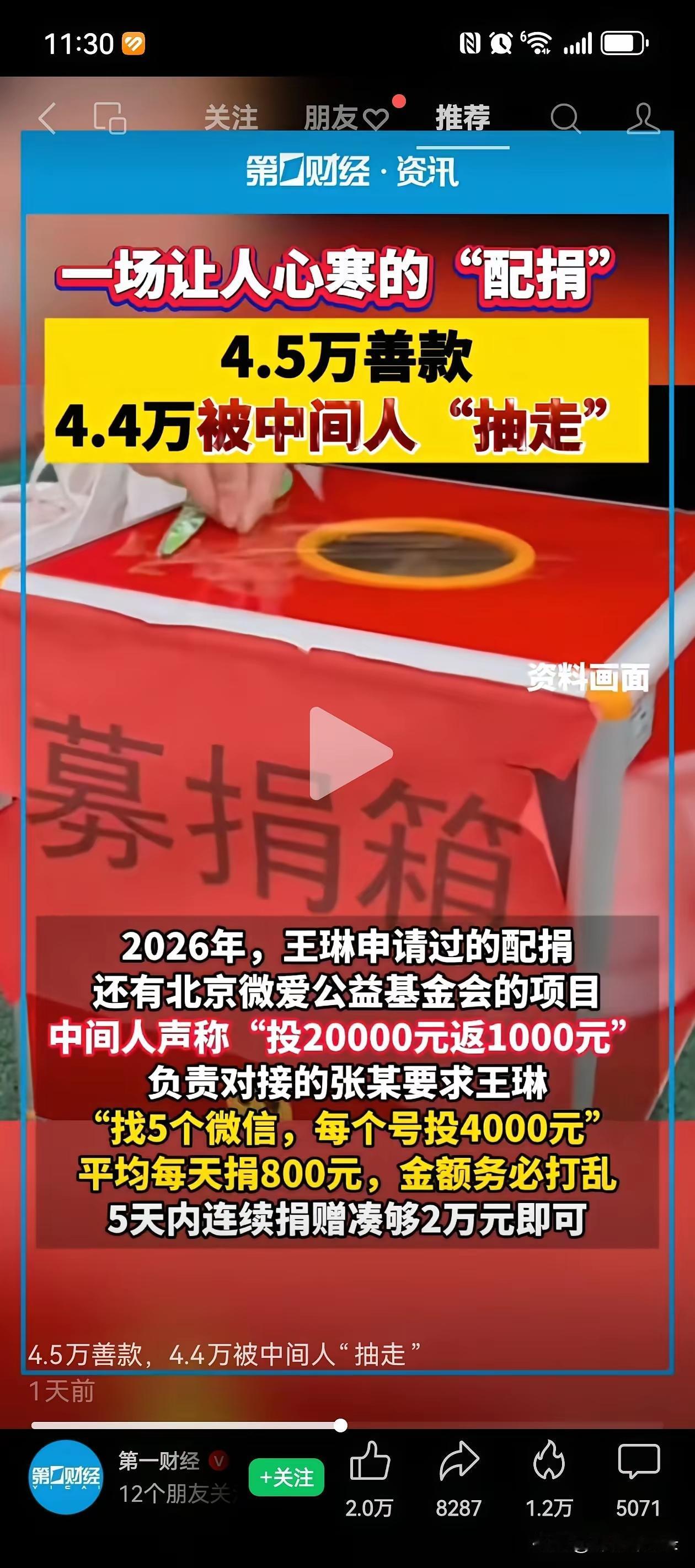 你还捐吗?捐款4.5万,被中间人抽走了4.4万,真正需要帮助的人却只拿到1000块,甚至还要再掏200块买发票!这对公益慈善是何等讽刺,基金会这4.4万怎么分,又是以高工资的名义吗?前期就有陈某甲拿年薪70万,因其远高于行业平均薪酬的案例引爆网络! 现在有些所谓搞慈善的人,“嘴里全是主义,心里全是生意”,他们表面上打着公益慈善的旗号,一副悲天悯人的样子,可背地里干的全是中饱私囊的勾当。 他们把慈善当成了赚钱的工具。他们不断消耗着大家对公益的信任,让真正想做善事的人寒心。长此以往,谁还敢轻易去做慈善?慈善的意义都被他们搞没了,真希望能严惩这些人,让公益回归纯净。