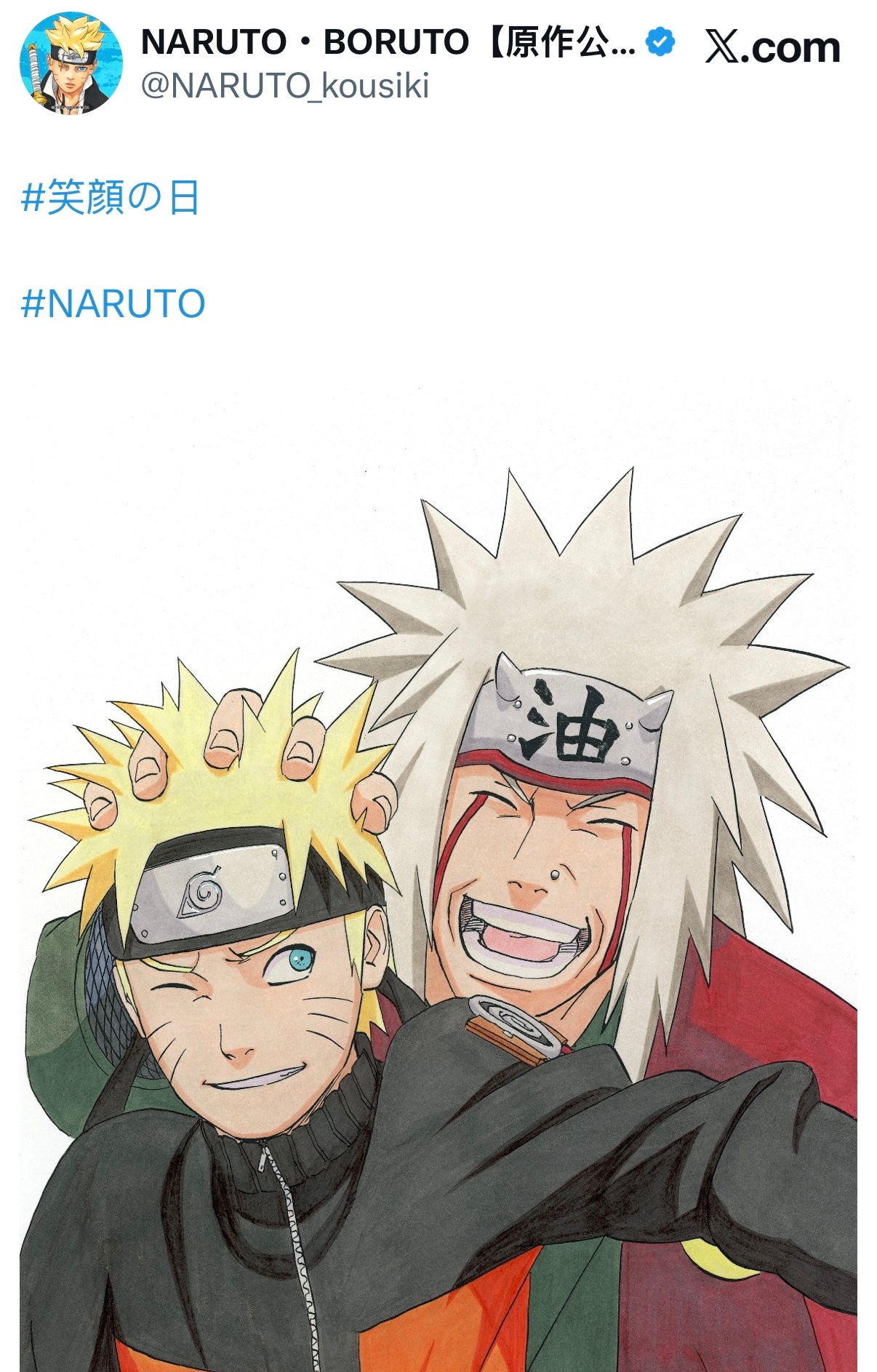 【火影忍者官方最新发布了推文】今天是“笑颜日”并附上了自来也摸鸣人头的场景 看