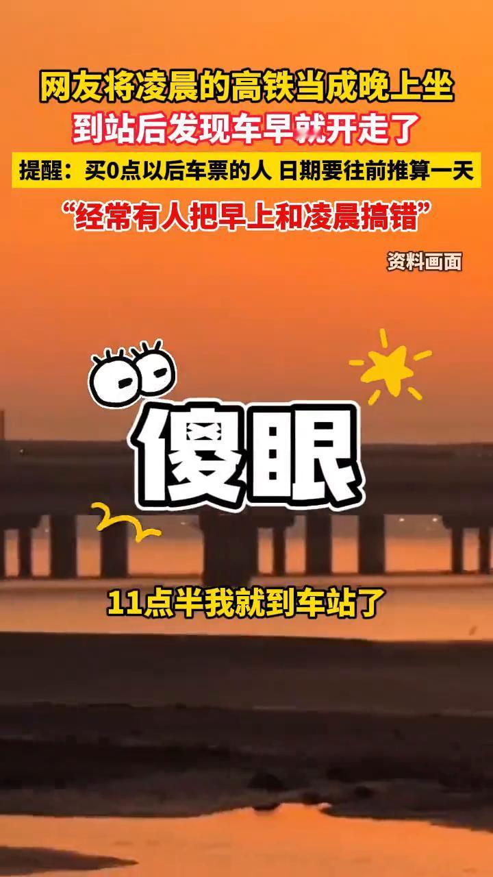 网友将凌晨的高铁当成晚上坐,到站后发现车早就开走了。 提醒:买0点以后车票的人日