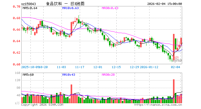 2月4日,食品饮料ETF(159843)涨1.90%,成交额3021.07万元。当日份额减少1200.00万份,最新份额为7.05亿份,近20个交易日份额增加2250.00万份。最新资产净值计算值为4.55亿元。