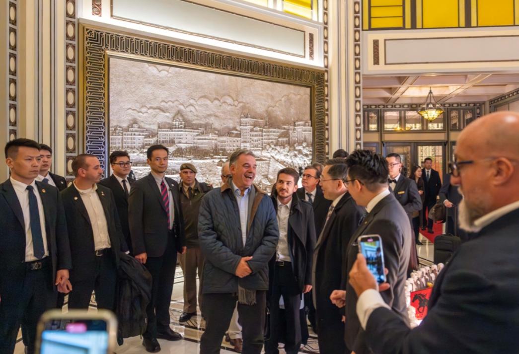 乌拉圭总统结束北京行程,4日晚到上海和平饭店,一楼大厅乐队演奏乌拉圭名曲《化妆舞会》欢迎奥尔西总统的到来。 只见他走在人群中,脸上的笑容藏不住,可见饭店为他准备的惊喜让他很开心,总统先生双手合十感谢接待人员,然后进入包间准备吃饭,而且和平饭店早已悬挂了乌拉圭国旗迎接总统先生,晚餐也是提前准备好的。 这个饭店大家并不陌生,因为日前英国首相斯塔默离华最后一餐就是在这里吃的饭,而且吃饭之前还去逛外滩,吃饭后乘车去机场,访华行程圆满结束。