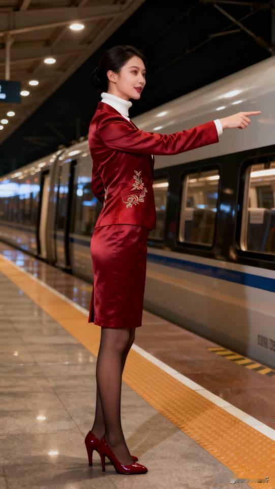 记录我的2026身穿红色职业套装裙的高铁女乘务员。靓丽乘务员 美女壁纸 气质美女