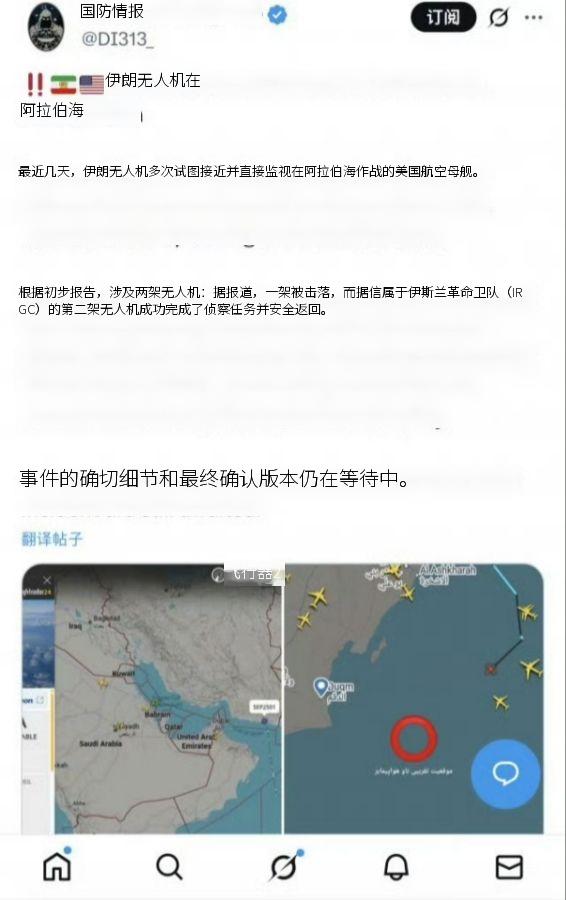 在林肯号上的F35C击落波斯一架沙萨德-129无人机而欢呼之际,外网消息称另一架129无人机已完成侦察航母任务安全返回!这漏洞可是灭顶之灾!这样的话林肯号就暴露在波斯火力锁定的之中,多架129无人机可持续不间断地锁定航母引导各种无人机、导弹瞬时饱和攻击!