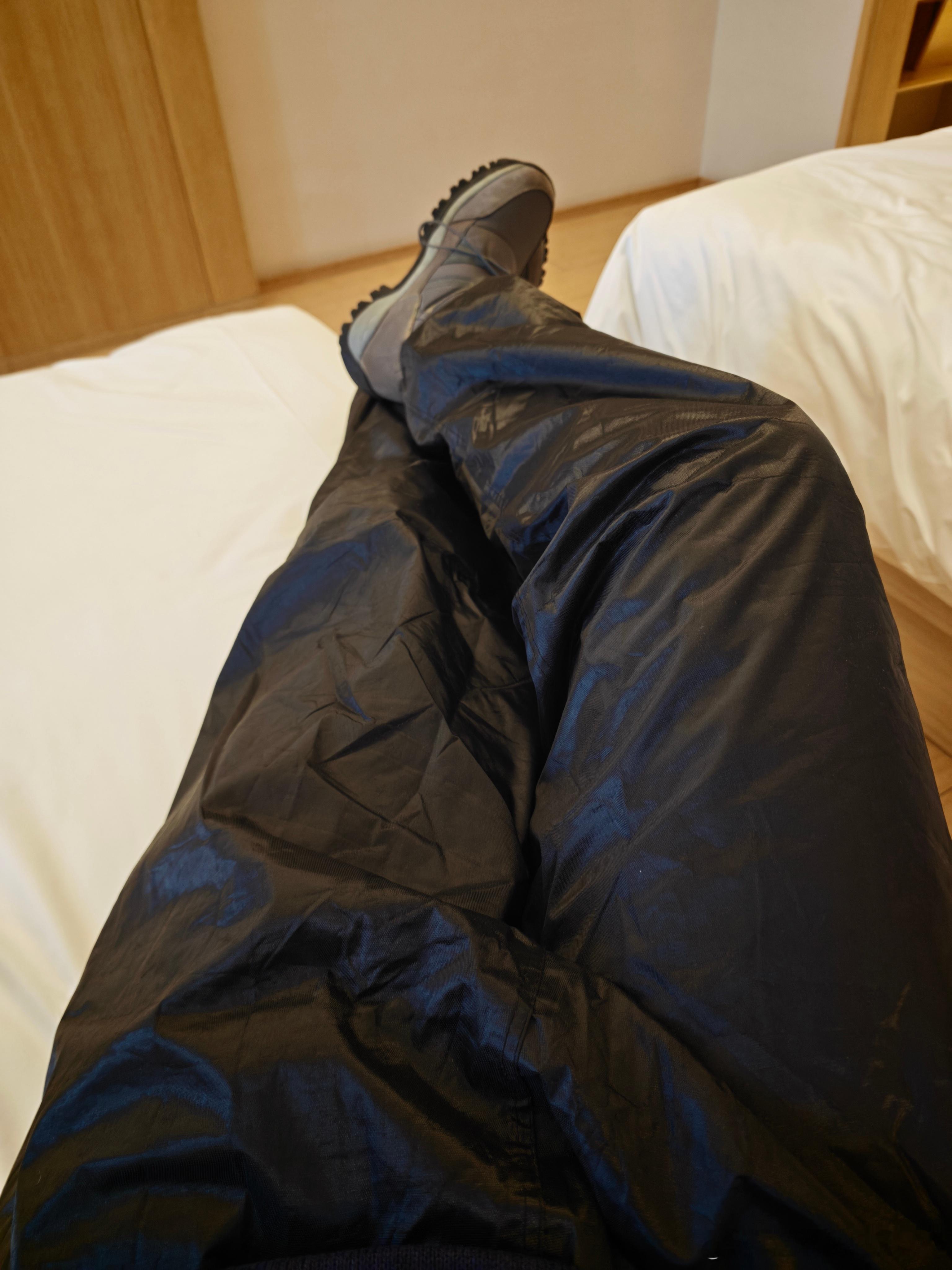 但我发觉这次带来的裤子穿不上了,机智如我想到极寒就是考虑防水防风,那么骑手雨衣一定是很合适。里面一层化纤的打底裤加一条羊绒内裤,没有科技那就要自己Layering。