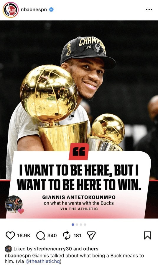 虎扑02月05日讯今日,美媒NBAonESPN发文,晒出字母哥的一处采访: