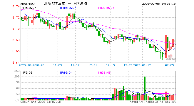 2月5日,消费ETF嘉实(512600)开盘跌0.15%,报0.680元。消费ETF嘉实(512600)重仓股方面,伊利股份开盘涨0.33%,贵州茅台跌0.33%,牧原股份跌0.04%,五粮液跌0.57%,温氏股份跌0.31%,泸州老窖跌0.71%,山西汾酒跌0.29%,海天味业跌0.19%,东鹏饮料涨0.03%,海大集团跌0.02%。