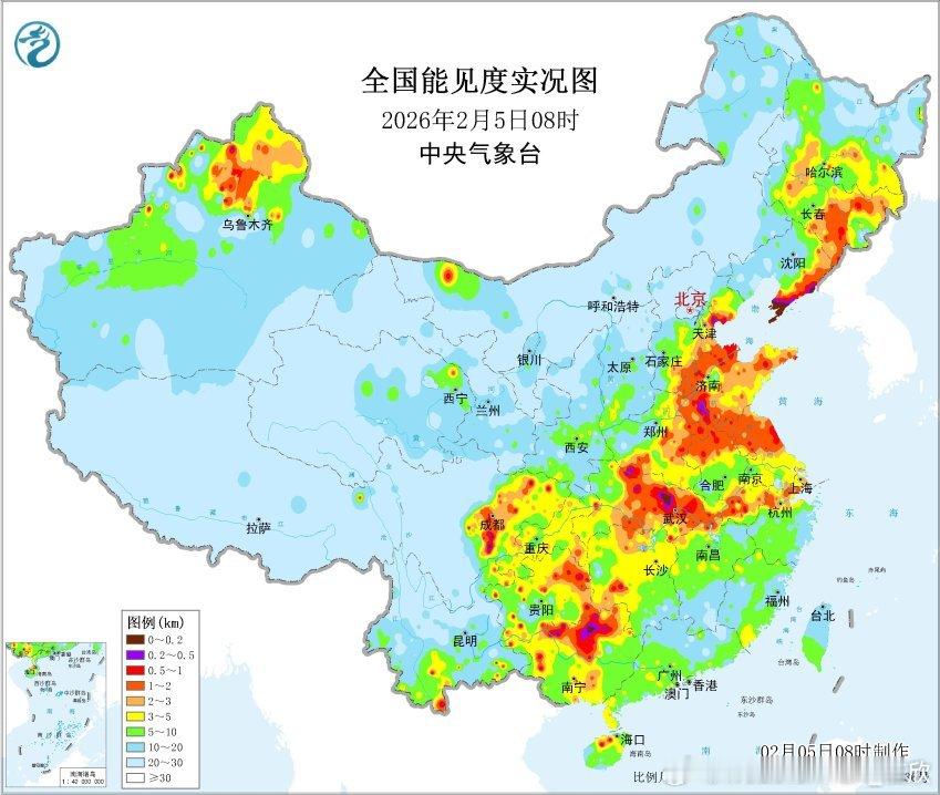 【雾和霾】今晨在辽宁天津山东安徽湖北贵州广西云南四川等地出现大雾。8时能见度:安徽黄山34米、四川犍为42米、青神46米、山东莱西46米,均出现特强浓雾。此外天津宁河60米、湖北宜城64米、广西南丹83米、江西庐山89米、贵州晴隆99米、云南砚山104米、辽宁大连153米,为各自省区市8时能见度最差站点,出现强浓雾。