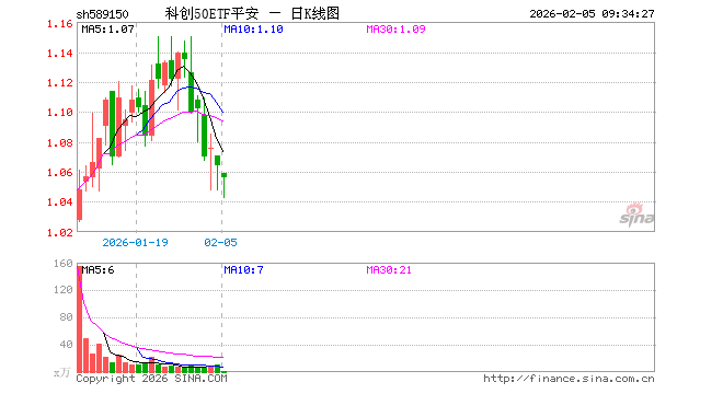 2月5日,科创50ETF平安(589150)开盘跌0.47%,报1.059元。科创50ETF平安(589150)重仓股方面,中芯国际开盘跌1.61%,寒武纪跌1.68%,海光信息跌2.11%,澜起科技跌5.28%,金山办公跌1.32%,联影医疗涨0.04%,拓荆科技跌3.47%,芯原股份跌4.04%,沪硅产业跌1.28%,传音控股涨0.00%。