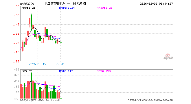 2月5日,卫星ETF鹏华(563790)开盘跌1.31%,报1.201元。卫星ETF鹏华(563790)重仓股方面,中国卫星开盘跌2.58%,航天电子跌2.53%,臻镭科技跌2.70%,中国卫通跌2.82%,中科星图跌2.69%,华测导航跌0.65%,北斗星通跌1.96%,北方导航跌0.78%,芯原股份跌4.04%,国博电子跌2.64%。