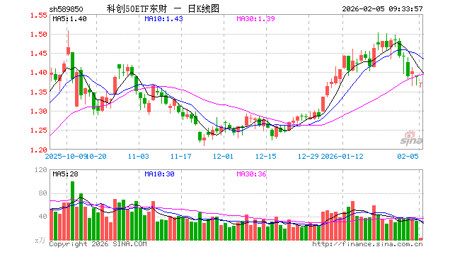 2月5日,科创50ETF东财(589850)开盘跌1.15%,报1.371元。科创50ETF东财(589850)重仓股方面,中芯国际开盘跌1.61%,寒武纪跌1.68%,海光信息跌2.11%,澜起科技跌5.28%,中微公司跌2.64%,金山办公跌1.32%,联影医疗涨0.04%,拓荆科技跌3.47%,芯原股份跌4.04%,沪硅产业跌1.28%。