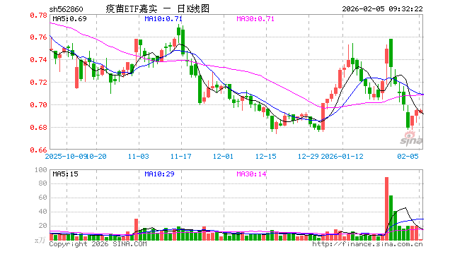 2月5日,疫苗ETF嘉实(562860)开盘跌0.43%,报0.692元。疫苗ETF嘉实(562860)重仓股方面,智飞生物开盘跌0.57%,沃森生物跌0.55%,万泰生物跌0.12%,辽宁成大涨0.25%,康泰生物涨0.00%,甘李药业跌0.99%,特宝生物涨0.37%,山东药玻涨0.00%,华兰生物跌0.32%,复星医药跌0.15%。