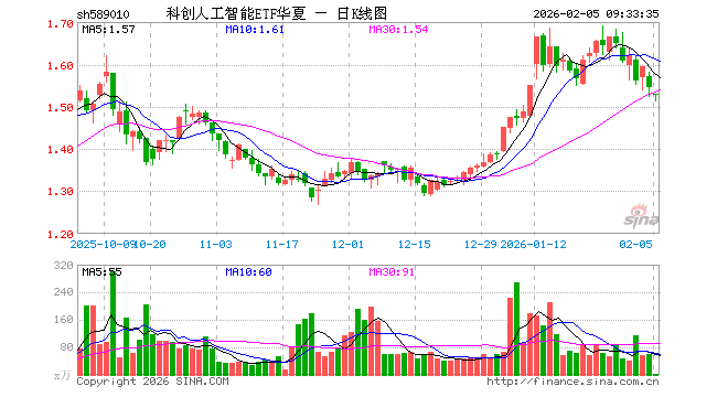 2月5日,科创人工智能ETF华夏(589010)开盘跌0.91%,报1.530元。科创人工智能ETF华夏(589010)重仓股方面,金山办公开盘跌1.32%,寒武纪跌1.68%,澜起科技跌5.28%,芯原股份跌4.04%,石头科技涨0.14%,晶晨股份跌1.00%,复旦微电跌1.32%,恒玄科技跌0.98%,中科星图跌2.69%,云天励飞跌2.18%。
