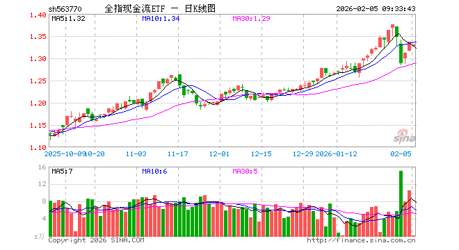 全指现金流ETF(563770)业绩比较基准为中证全指自由现金流指数收益率,管理人为招商基金管理有限公司,基金经理为许荣漫,成立(2025-05-08)以来回报为33.60%,近一个月回报为7.21%。