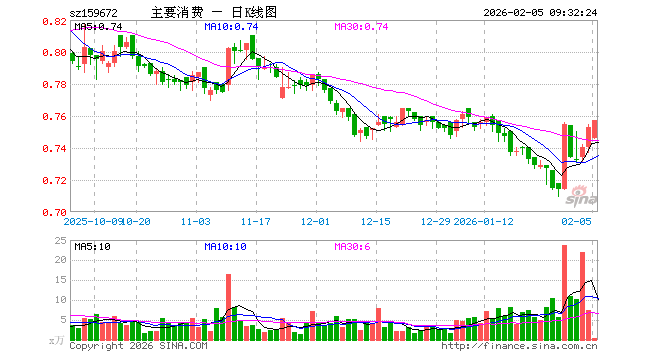 2月5日,消费ETF博时(159672)开盘跌0.93%,报0.746元。消费ETF博时(159672)重仓股方面,伊利股份开盘涨0.33%,贵州茅台跌0.33%,牧原股份跌0.04%,五粮液跌0.57%,温氏股份跌0.31%,泸州老窖跌0.71%,山西汾酒跌0.29%,海天味业跌0.19%,东鹏饮料涨0.03%,海大集团跌0.02%。