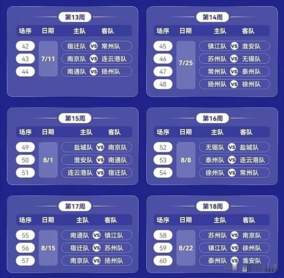 2026苏超常规赛赛历官宣⚽️ 朋友们!苏超新赛季赛历终于出啦📅 4月11日开赛→9月19日收官,22周78场全周六开打 13支球队主客场单循环,最后两轮6场同步开战超燃! 首轮焦点直接拉满: 常州VS南通揭幕战🔥 扬州VS苏州同城德比氛围感拉满 还有无锡VS镇江、连云港VS盐城多场对决 五一、端午都有重磅场次,蹲苏州/常州/南通的朋友速码!