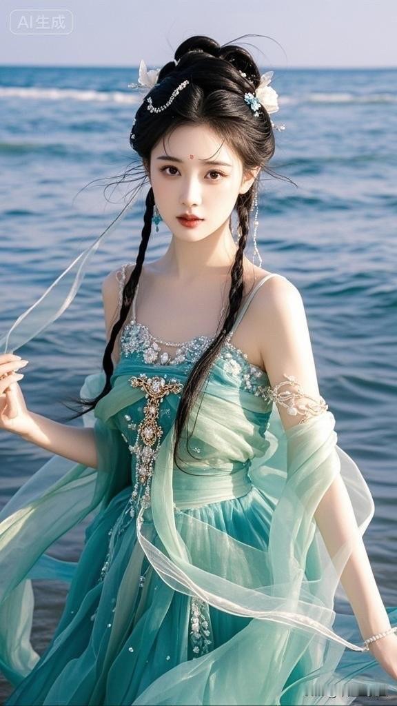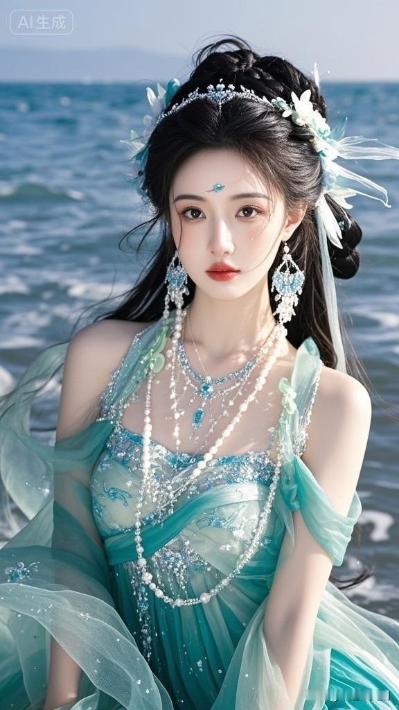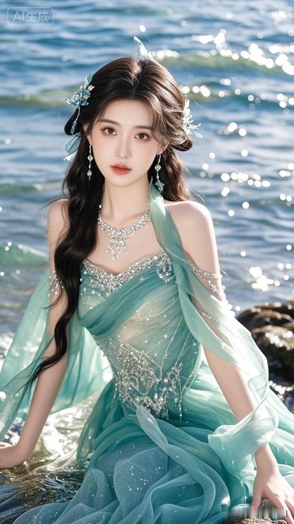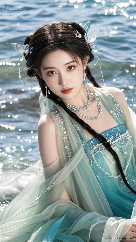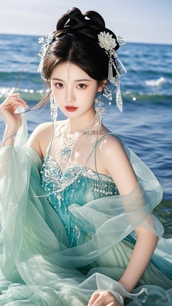 梦幻海滨仙境,碧波荡漾,美人如画