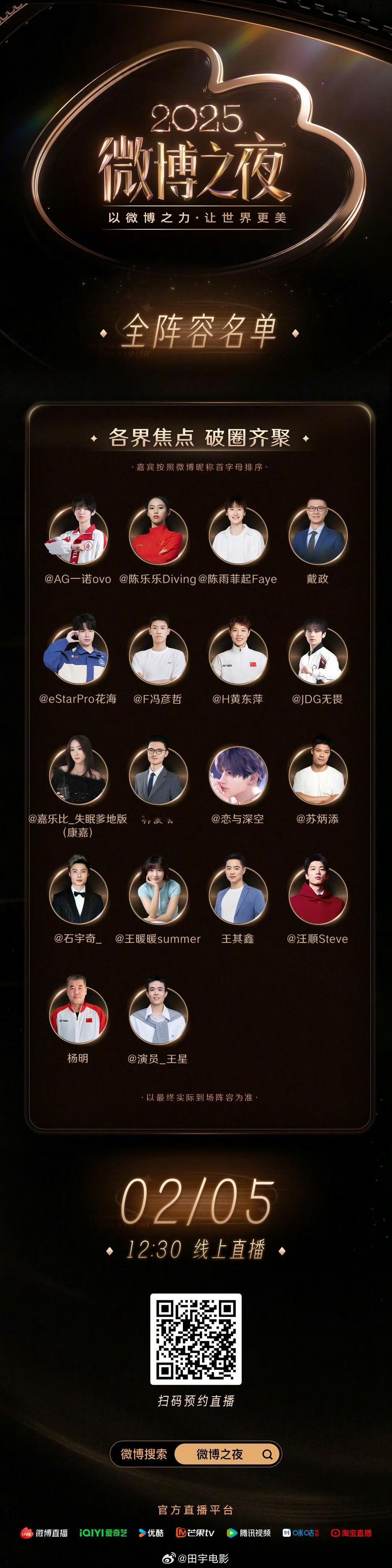 2025微博之夜全阵容名单 重磅揭晓 !群星闪耀云集、体坛、电竞、社会热点人物悉