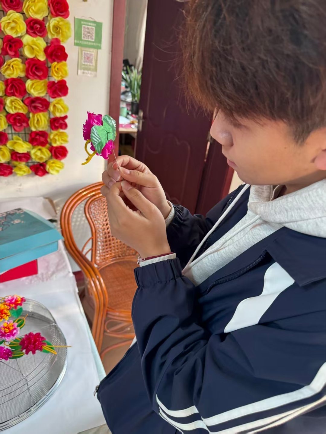 秦岭笑谈 【绢花非遗探精粹,文化传承青年行】曲阜师范大学大学生寒假社会实践2026年1月16日,曲阜师范大学生命科学学院“乡韵承古,温情相伴”社会实践队探访曲阜市大庄绢花文化园,体验山东省非遗曲阜大庄绢花的技艺魅力。在传承人张祥冬老师讲解中,队员了解了绢花的历史脉络、独特工艺及文化象征,并认识到其传承困境。绢花以逼真造型和精湛工艺闻名,为曲阜四大传统工艺之一。队员参观制作作坊,学习选料、染色等步骤,敬佩匠人精神,部分人还尝试简单制作,感受手艺巧妙。此次探访让队员领略非遗魅力,领悟传承责任,增强了文化自豪与保护热情。