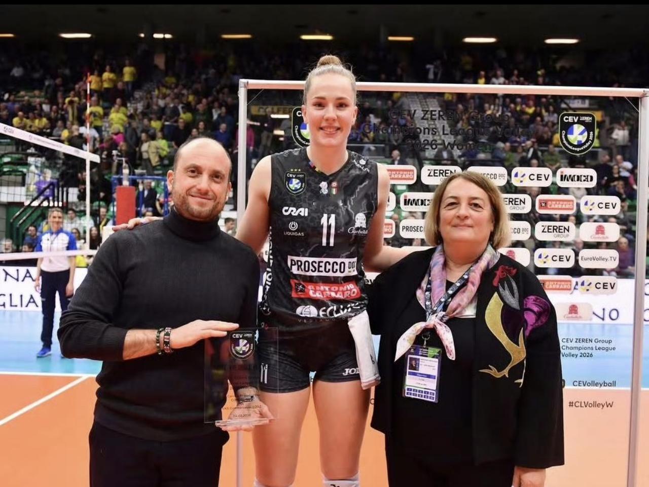 意大利传来好消息!朱婷15分冠全场,科内3-0横扫晋级欧冠八强 昨晚刚刚结束的女排欧冠小组赛,朱婷所在的意大利科内利亚诺以 3-0(25-17/25-18/25-12)零封波兰罗兹LKS,以6战全胜锁定小组头名晋级八强。 咱们的朱婷,这回是首发打满三局,拿到了全场最高15分(21扣13中+2拦网),同时承担全队最多17次一传且0失误,攻防两端统治力拉满。 略显遗憾的是: 本场MVP最终给到斩获13分的队友哈克,可能是效率更高吗?还是什么呢?不得而知,朱婷虽无缘最佳,但全场表现仍获外媒与球迷一致认可。 近期朱婷竞技状态持续走高,面对俱乐部不续约的传闻,她始终未发表任何负面言论,而是用一场场高效表现证明自身核心价值,用实力回应所有质疑。 各位觉得,朱婷本场表现配不配拿MVP?