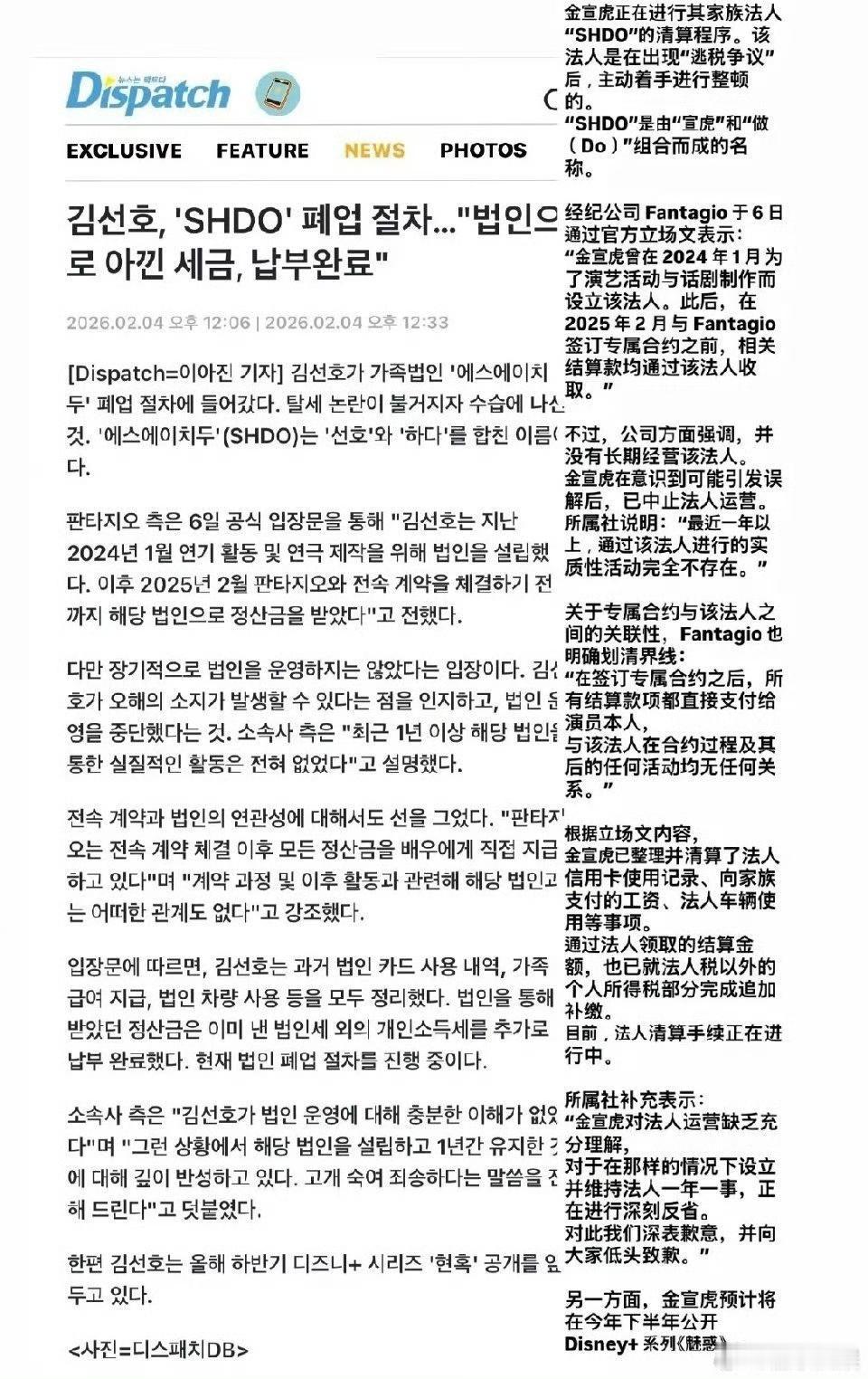 金宣虎的税务争议刚起,D社就直接转发了经纪公司的澄清声明,还顺手安利了他和裴秀智合作的待播新剧《魅惑》。这已经是D社第二次为他撑腰了,2021年堕胎风波闹得最凶时,也是D社甩出铁证帮他洗清冤屈。从跌落谷底到被权威媒体两次正名,金宣虎这一路,总算等到了拨云见日的时刻,也更期待新剧的播出了!