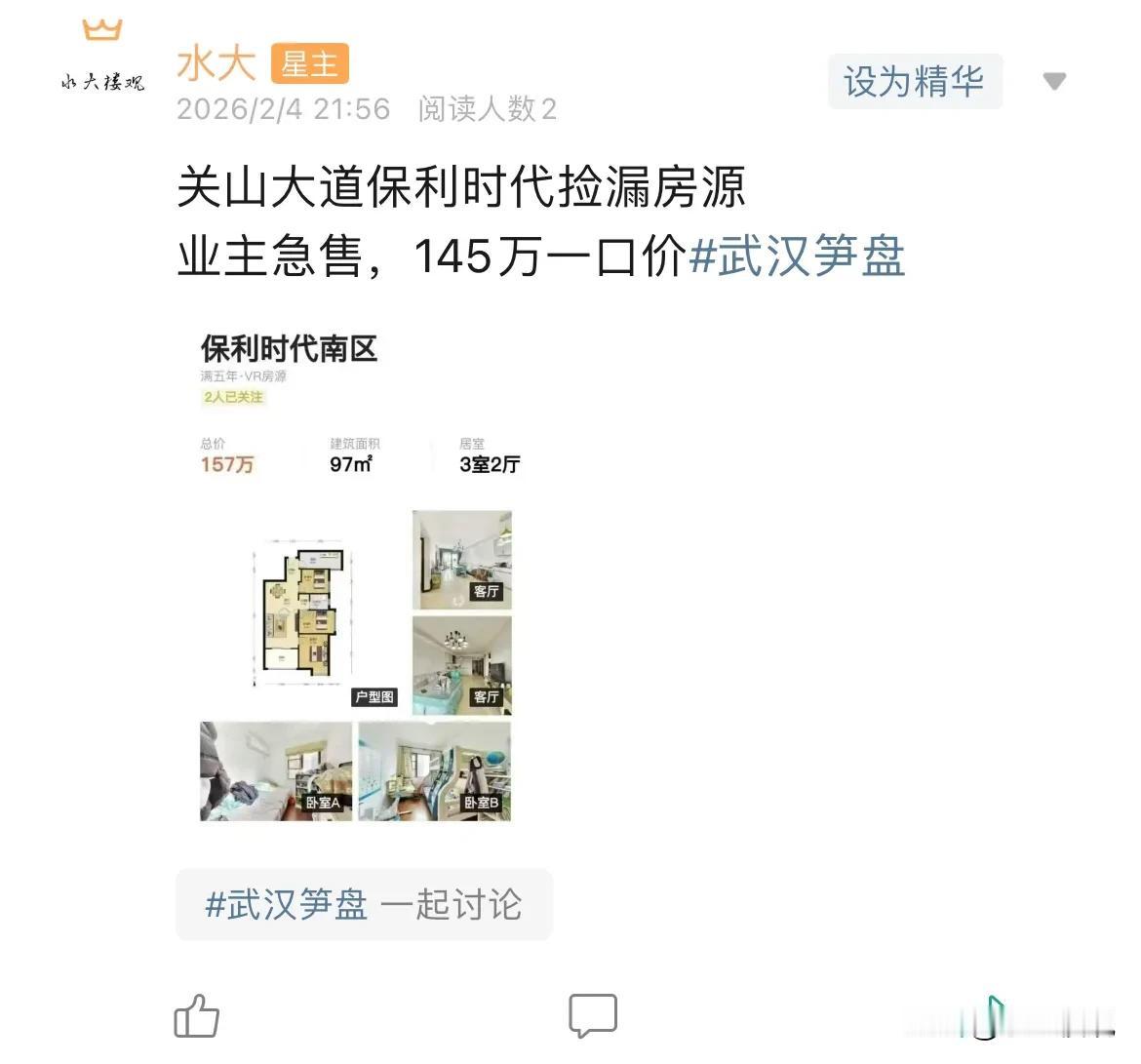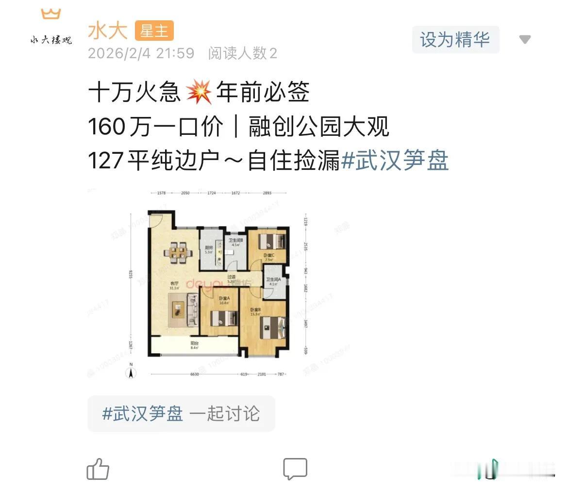 今日美居 1.水域条际在任何时候,行情好还是行情差,都是小户型比大户型单价更贵,大户型早就2万单价以下了,现在小户型也2万以下了。2021年,水域条际就是从单价1.9左右开始北伐一路到接近3万的。 2.保利时代南区自2022年开始,每年有规律下行,幅度都是一样的,当然,这种非方正通透户型,本身单价是低一些。 3.后湖基本上都到1.2了,融创实际上年初就是这个价格了,年末还是这个价格,算是已经稳下来了。 房价已经止跌回稳,各位不要错判形势,该买就要买,中国经济前景无限,中国房地产目前健康水平空前,具有极大的购买价值,有需要的,不要犹豫,马上买!