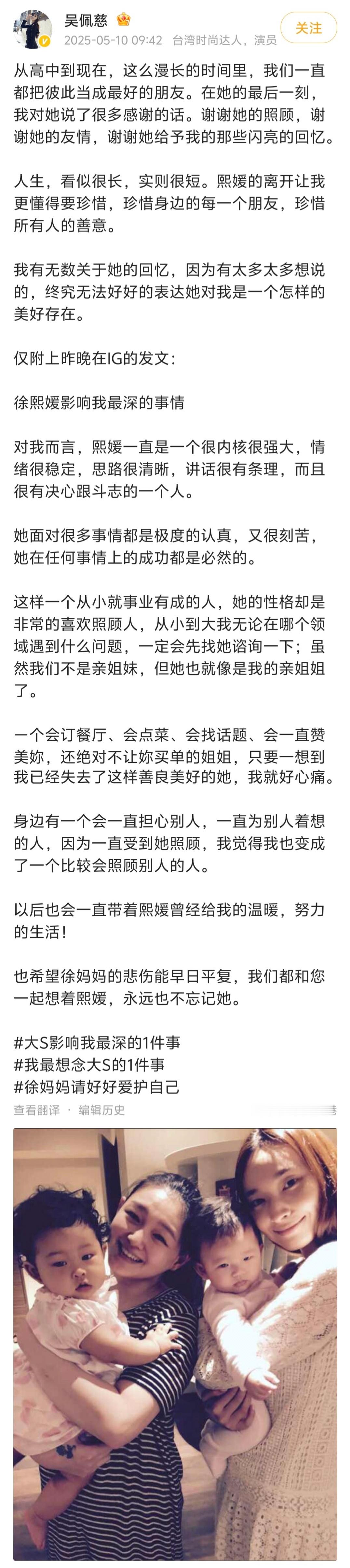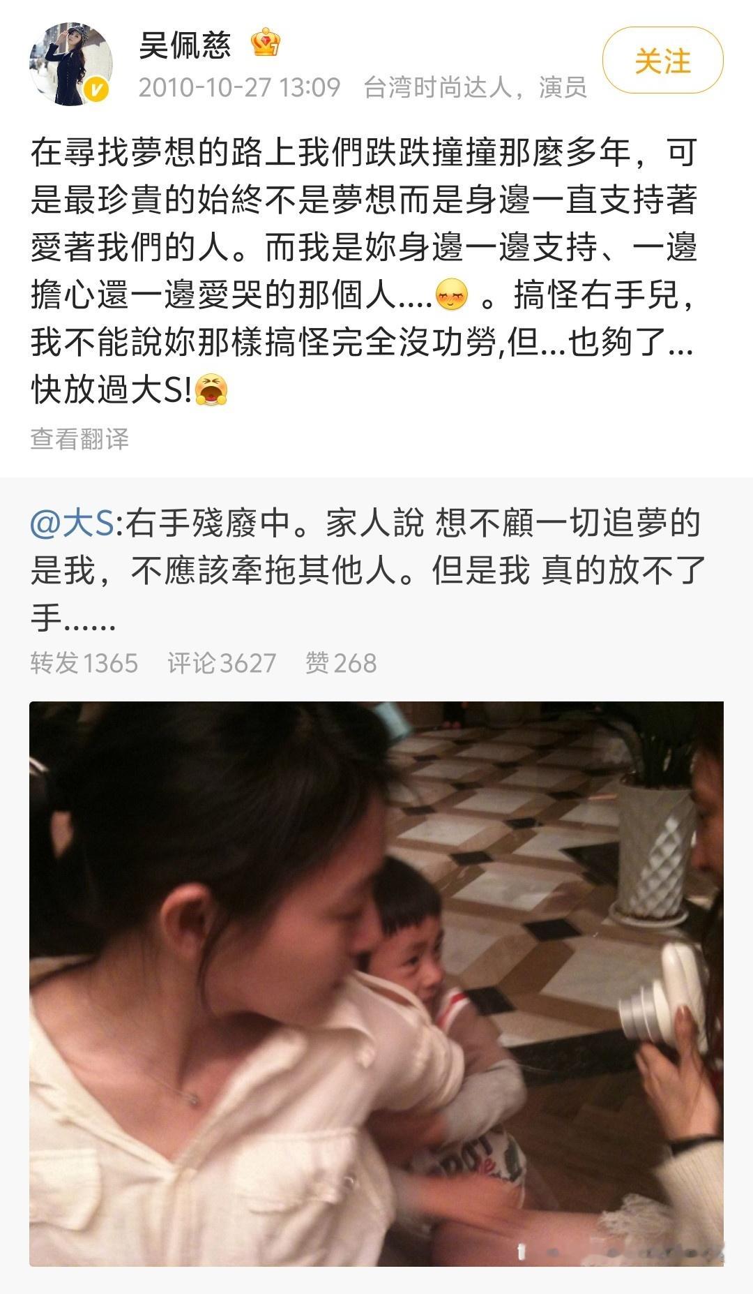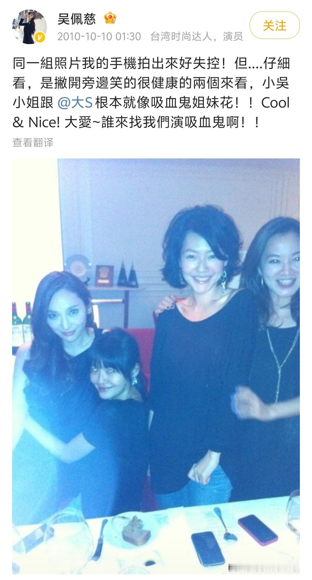 【吴佩慈分享与大S的小故事】大S曾说想和吴佩慈重组家庭 2月4日深夜,分享了一个