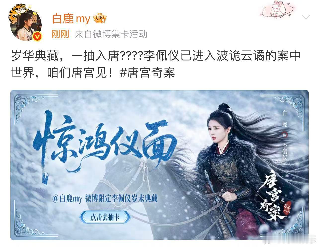 白鹿咱们唐宫见白鹿李佩仪小卡 白鹿李佩仪岁华典藏一抽入唐,期待和李佩仪在唐宫见啦