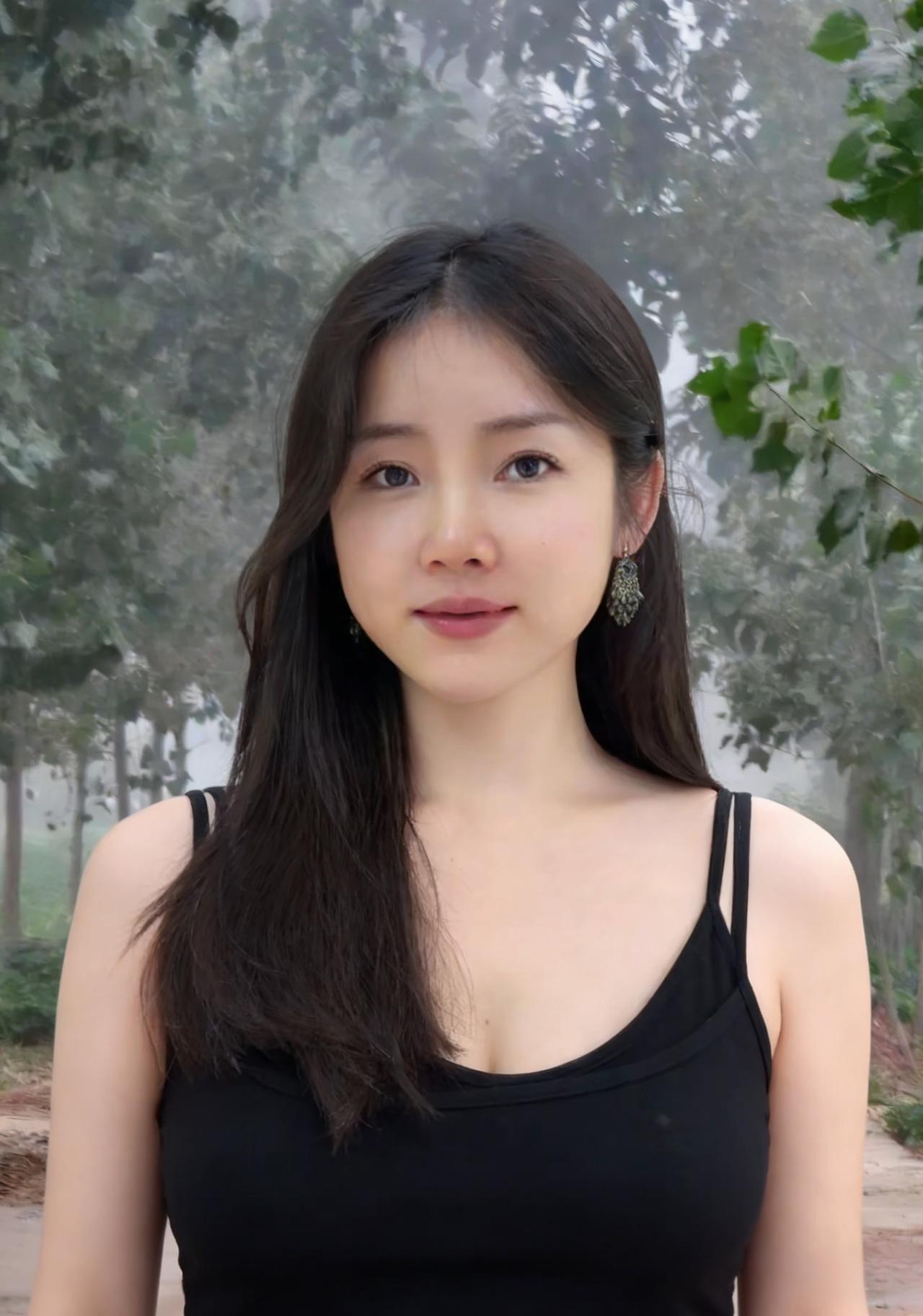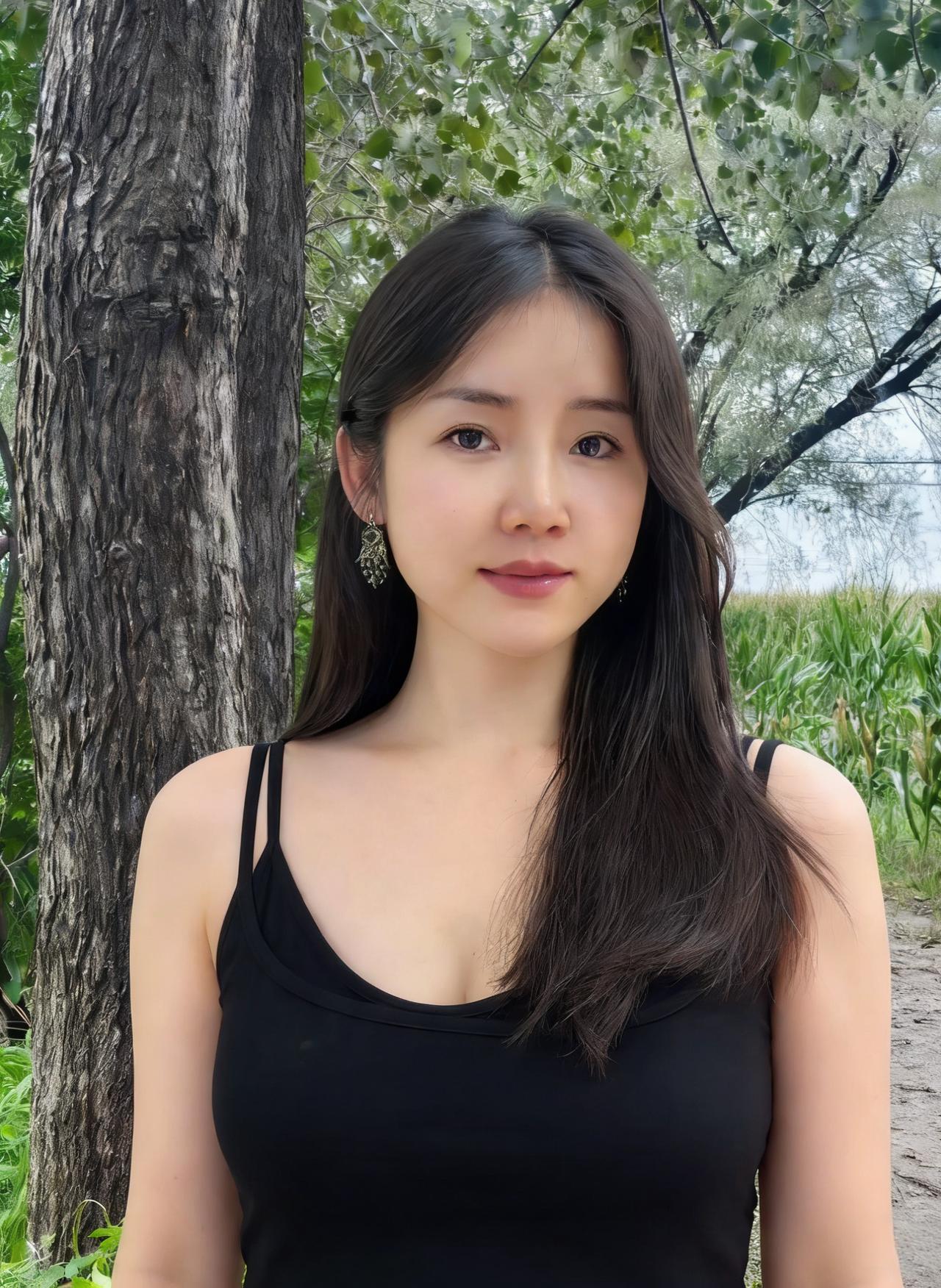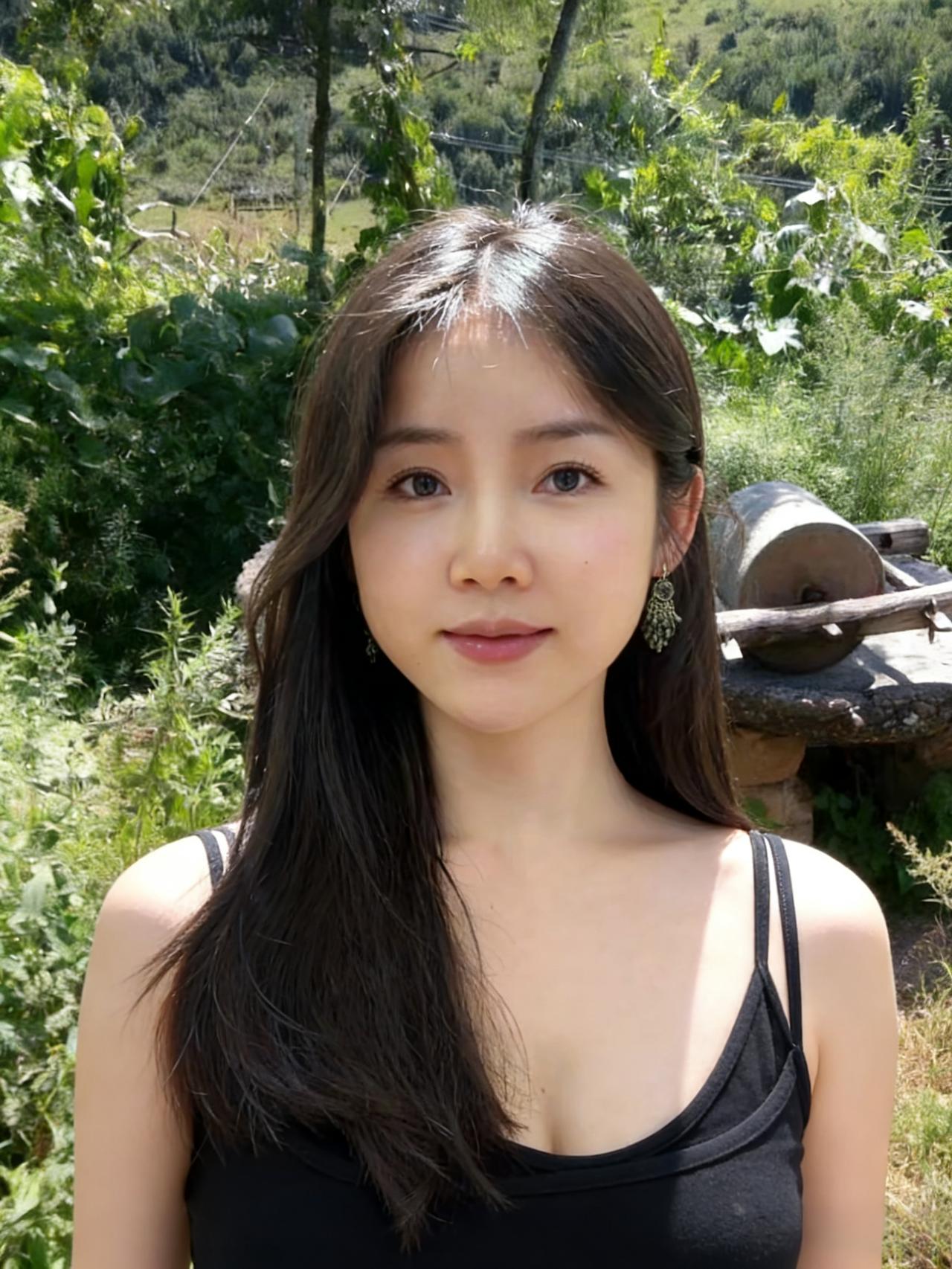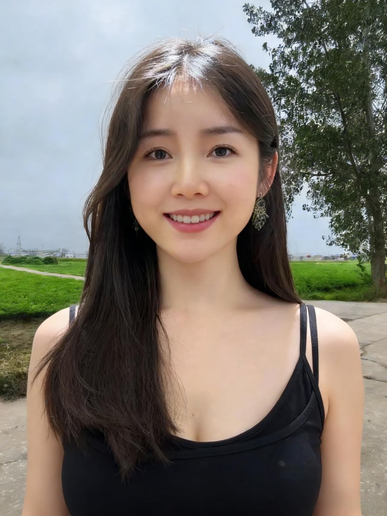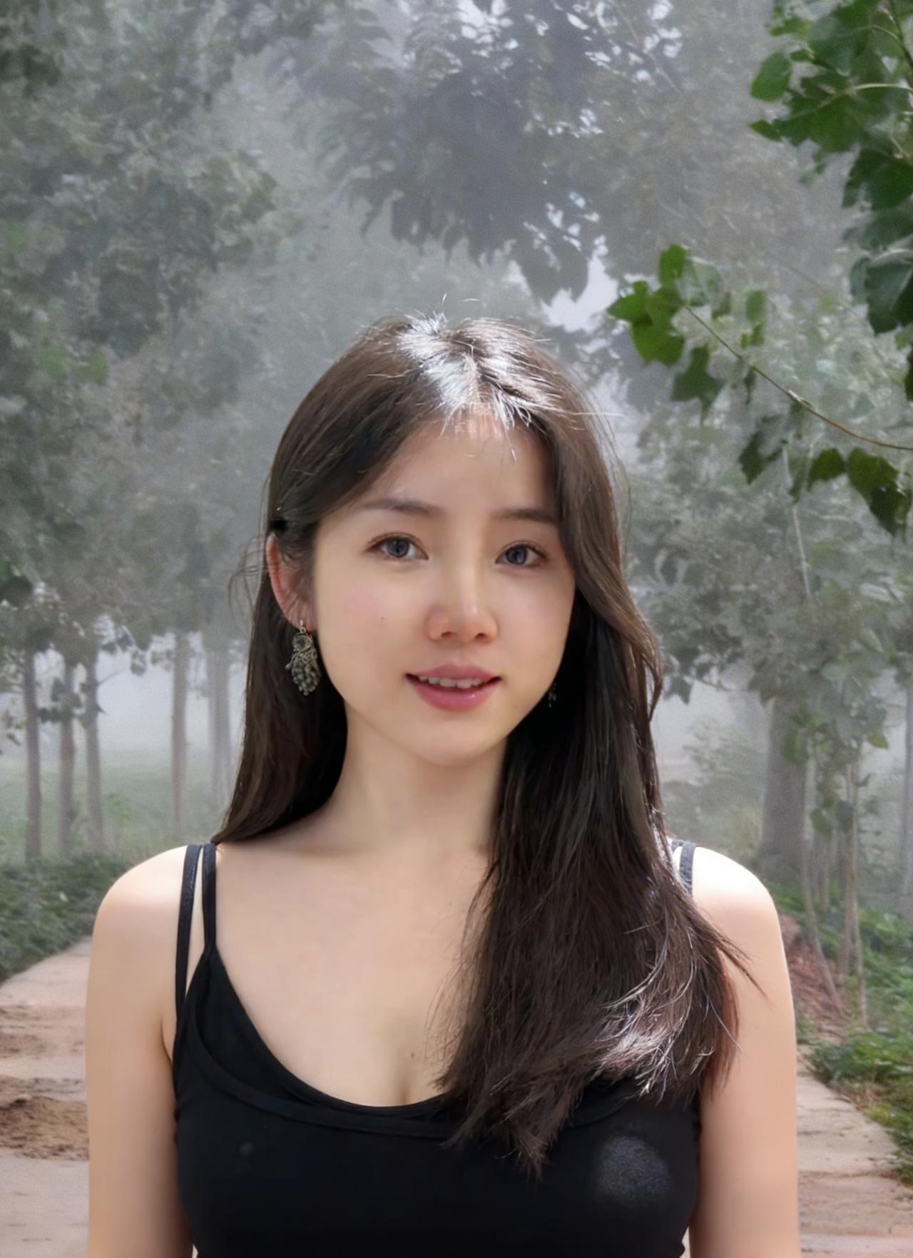 雾把玉米地揉成一片模糊的绿 你站在田埂,像刚从露水里长出的植物 黑色吊带接住清晨的凉意 耳环上的银饰晃着细碎的光 像去年遗落的星子 ~ 风穿过高粱穗,发出沙沙的声响 你的目光比远处的雾更柔软 在湿润的空气里漾开 身后的花生地铺展成绒毯 每一片叶子都在呼吸 ~ 你侧过身时,长发扫过肩颈 弧度比田埂的曲线更温柔 远处的白墙在雾里洇开轮廓 像没写完的句子 而你是最工整的那一行 ~ 泥土的腥气混着青草的甜 你笑起来,雾就散了一些 脚印在湿软的土上印出浅痕 像岁月的邮戳 盖在这个无风的清晨