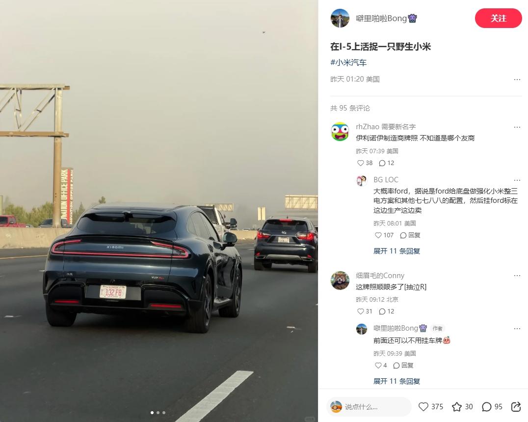 最近有老铁在美国 I-5 州际公路上偶遇了小米 YU7 Max 外媒猜测可能与Rivian有关: 1. Rivian工厂就在伊利诺伊州 2. 车牌编号132曾出现在Rivian测试车上 3. Rivian正全力推进约45000美元(约合31.3万元人民币)的R2车型,计划6月前发布 其实Rivian CEO早说过买中国车做测试,这波操作更像是为R2上市前“摸底”竞品,常规操作罢了[狗头] 你觉得小米SU7 Max有啥值得Rivian学习的?