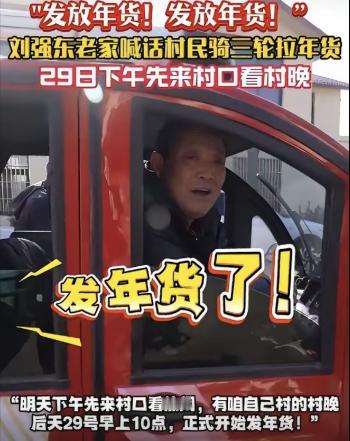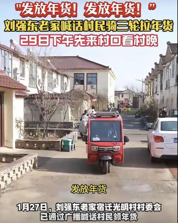 太感动!1月27日晚上,最近很低调的刘强东,突然冲上了热搜,不是因为奶茶妹妹,而是因为宿迁光明村的乡亲们要忙坏了。 凭着对家乡乡亲的一份心意,悄悄冲上了热搜,网友们刷到视频,清一色的感慨,原来真正的不忘本,从来都不是挂在嘴边的口号。 离春节还有十来天,光明村的主干道就已经被收拾得干干净净,家家户户的门口都挂起了红灯笼,空气中飘着腊肉、香肠的香味,还有此起彼伏的欢声笑语。 村里的老人说,这种热闹,他们已经习惯了十几年。 从2015年开始,每年这个时候,刘强东都会准时回到村里,给乡亲们送年礼、发红包,从来没有间断过。 有一位68岁的大爷,手里攥着刚领到的红包,笑得合不拢嘴。 他说自己活了大半辈子,从来没想过能年年收到这么大的红包。 不仅有现金,还有各种家电,这日子,真是越过越有滋味。 很多人都好奇,刘强东为什么对光明村的乡亲们这么好,为什么能十几年如一日地坚持回来回馈家乡。 其实这份坚持的背后,是一份无法割舍的恩情,一份刻在骨子里的牵挂。 那年,18岁的刘强东,刚刚收到中国人民大学的录取通知书。 满心欢喜的同时,也犯了难——家里实在太穷,凑不齐他的路费和学费。 乡亲们得知消息后,纷纷翻箱倒柜,有的凑出几分几毛的零钱,有的从鸡窝里掏出刚下的土鸡蛋。 最终凑齐了500元现金和76个鸡蛋,小心翼翼地塞到刘强东的手里,叮嘱他到北京要好好读书。 如今,几十年过去了,当年那个背着蛇皮袋去北京求学的穷小子,已经成长为家喻户晓的商业巨 擘。 但他从来没有忘记自己的根,他常说,自己是吃百家饭长大的,这份情,一辈子都还不完。 刘强东的回馈,从来都不只是简单的发红包、送年货,他更看重的是:授人以鱼不如授人以渔。 希望能真正带动家乡发展,让乡亲们能靠自己的双手过上好日子。 除了带动就业,刘强东还十分关注家乡的教育事业,他知道,只有让孩子们多读书、长见识,才能真正改变家乡的未来。 这样一来,以前村里的孩子,从来没有见过3D打印机,没有和AI机器人下过棋。 而现在,不出村口就能触摸到前沿科技,感受到科技的魅力。 村民们的人均年收入,从2015年的1.2万元,增长到2025年的4.8万元,翻了四倍。 以前低矮的土坯房,也慢慢变成了整齐漂亮的小洋楼。 新春大集更是热闹非凡,刘强东特意安排了京东的供应链资源,把全国各地的特色农产品、年货都搬到了村里。 乡亲们不用出村,就能买到来自全国各地的好东西。 连村里的老人都说,现在的新年,不仅有年味,还有科技味,这都是托了刘强东的福。 其实,刘强东对家乡的回馈,从来都不局限于光明村,整个宿迁,都因为他的带动,发生了巨大的变化。 乡亲们心里都清楚,刘强东的这份心意,是真诚的,是刻在骨子里的。 他没有因为自己的成功,就忘记了来时的路;没有因为身份的改变,就疏远了家乡的乡亲。 光明村的热闹,还在继续;刘强东对家乡的牵挂,也从未停止。 他用十几年的坚持,践行着当年对乡亲们的承诺;用实实在在的行动,回报着当年的恩情。 用自己的力量,让家乡变得越来越好,让乡亲们的日子越来越红火。 或许真正的成功,从来都不是拥有多少财富,而是无论走多远,都能记得自己从哪里来,都能不忘曾经帮助过自己的人。 信源:九派新闻2026-01-29刘强东为家乡父老发年货,每户领12种品类,首位领取者:手机给孙子用,酒除夕夜喝