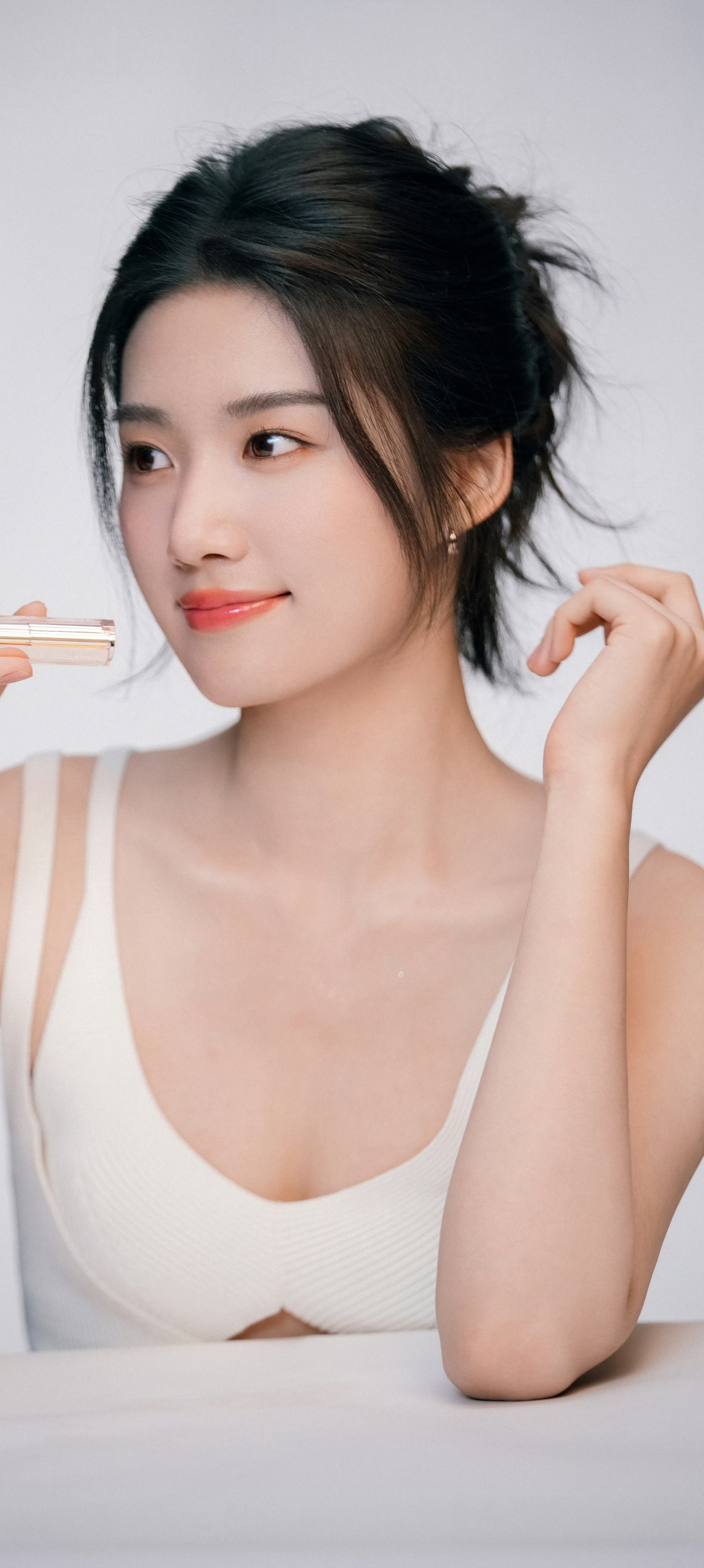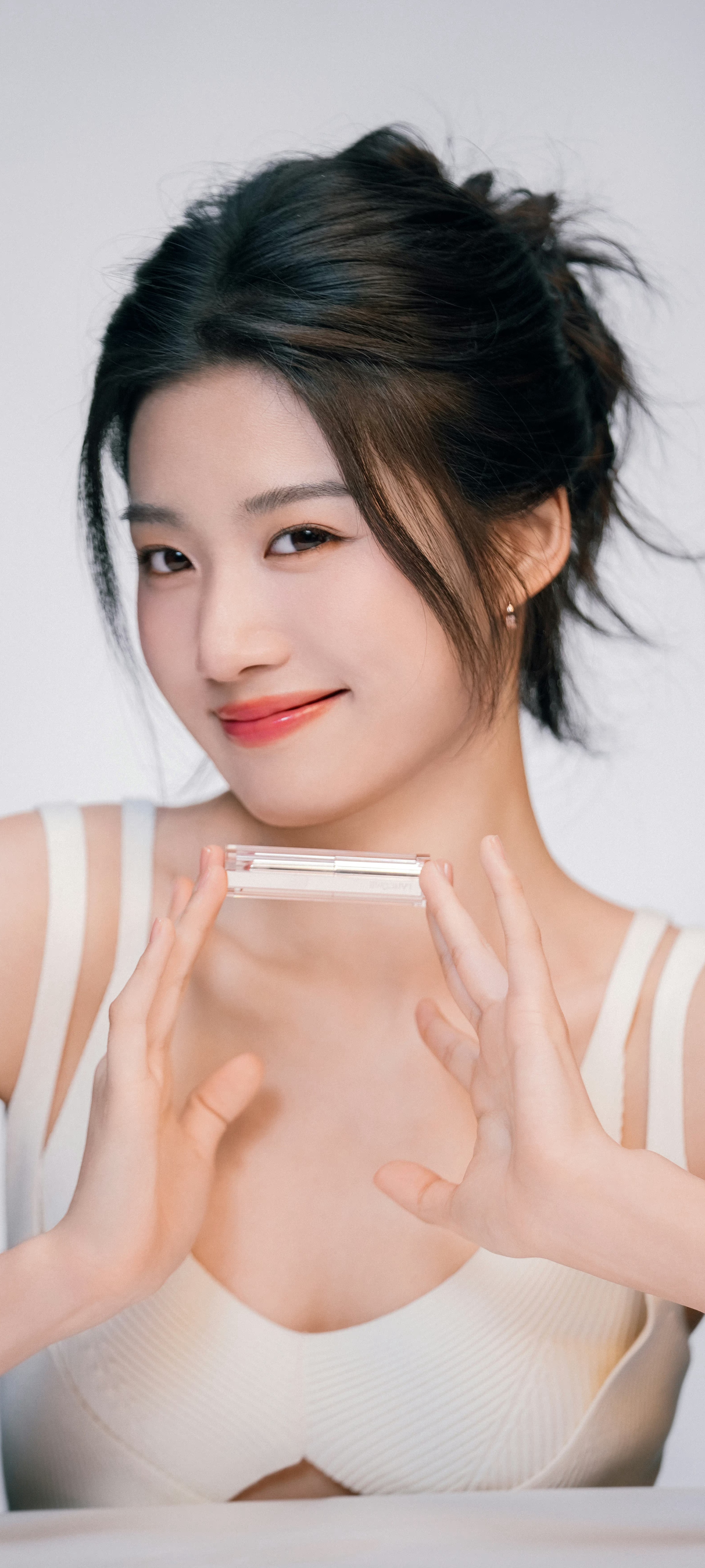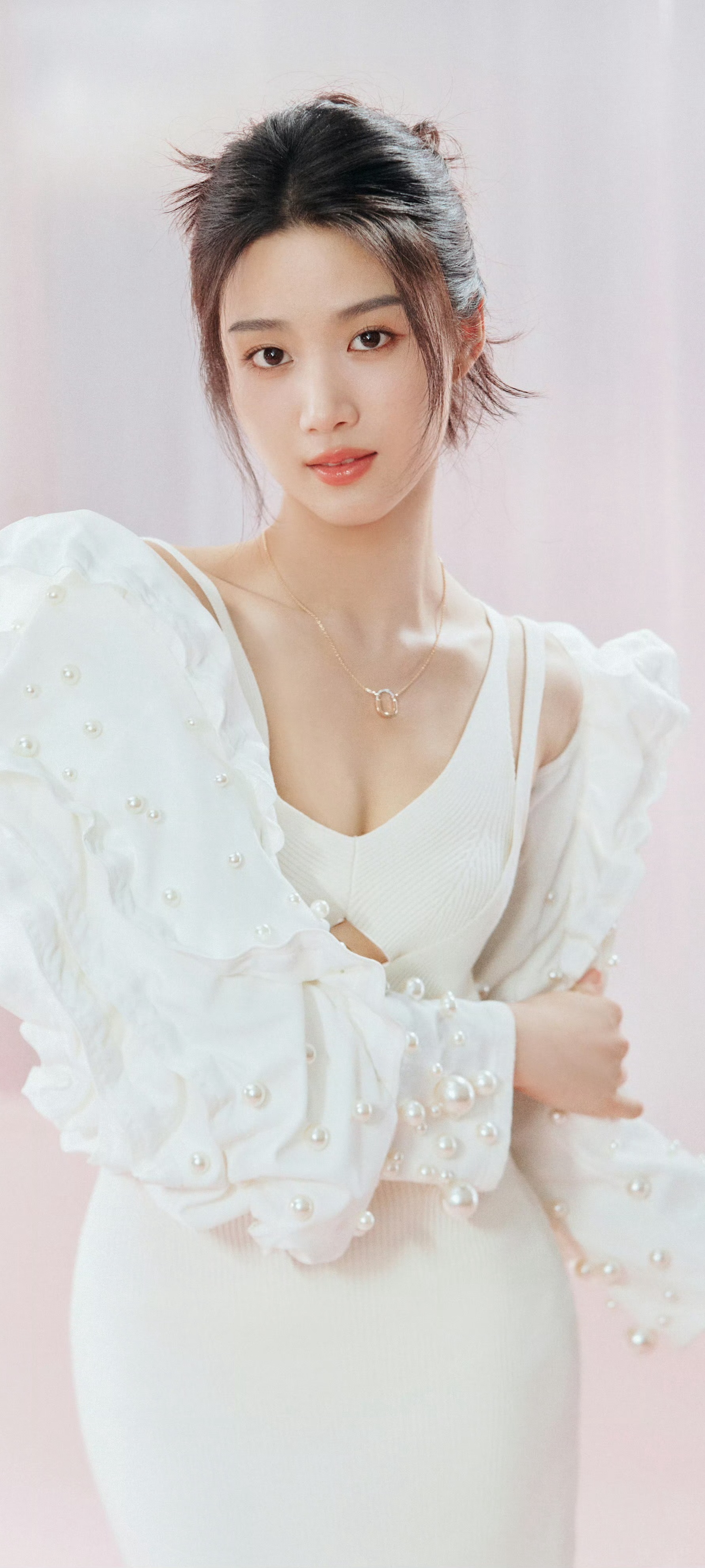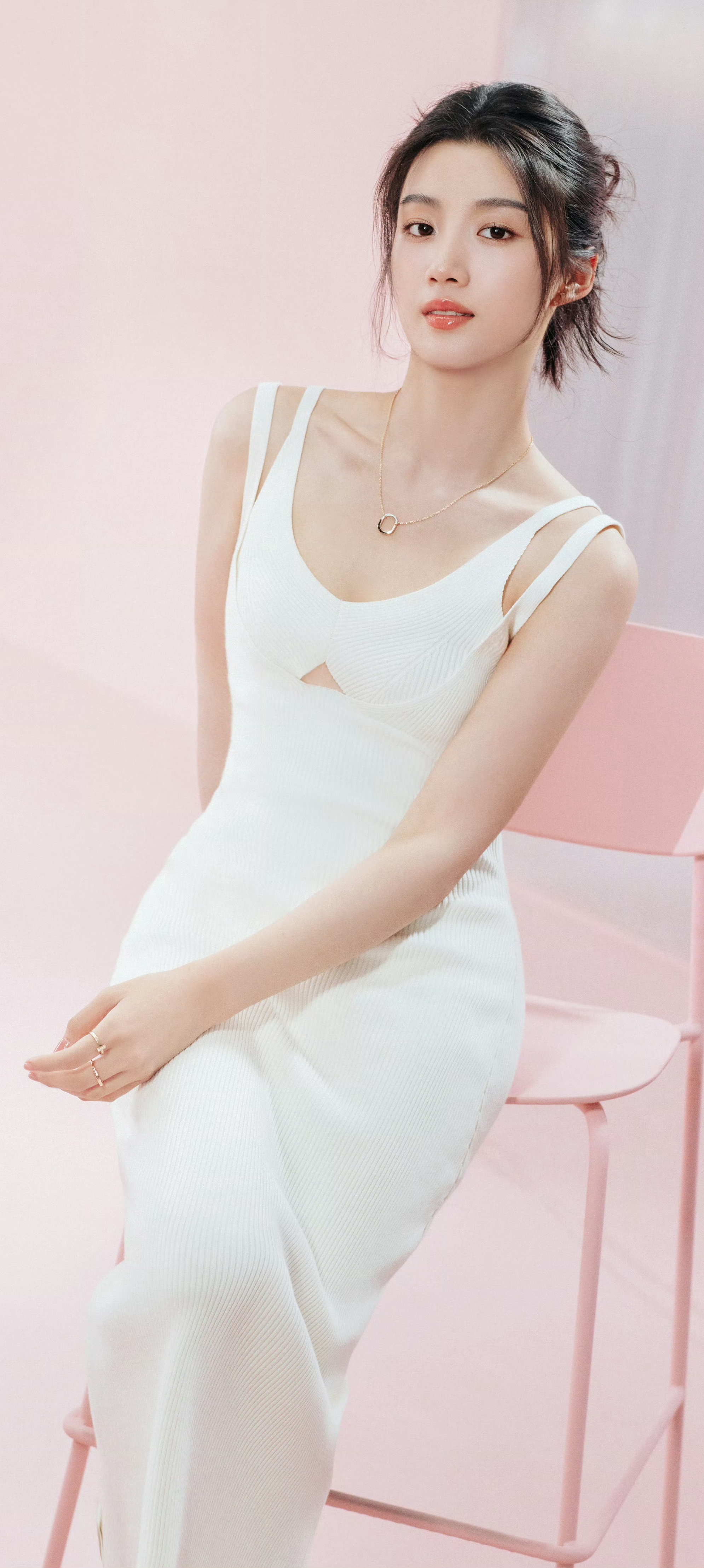卢昱晓,双肩带白裙造型,治愈甜美。卢昱晓