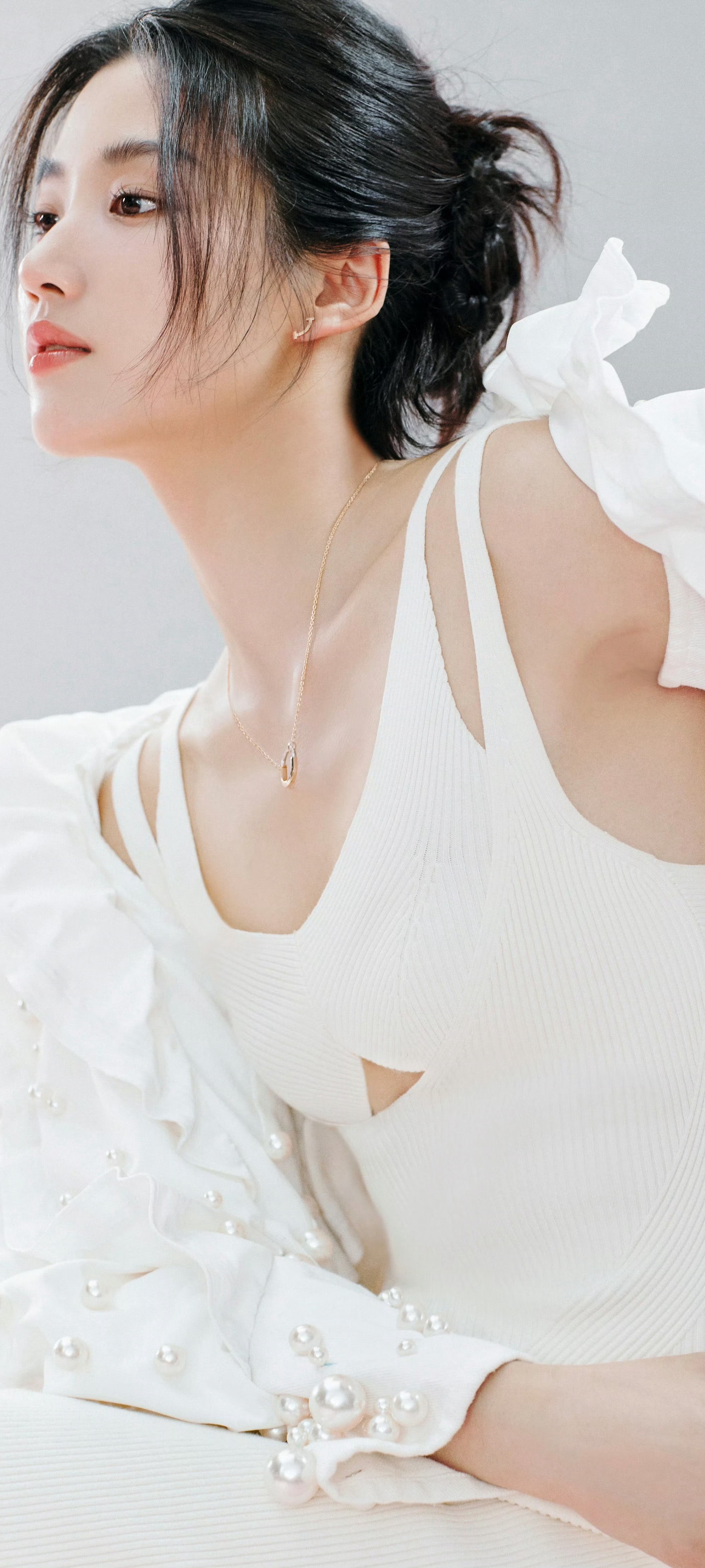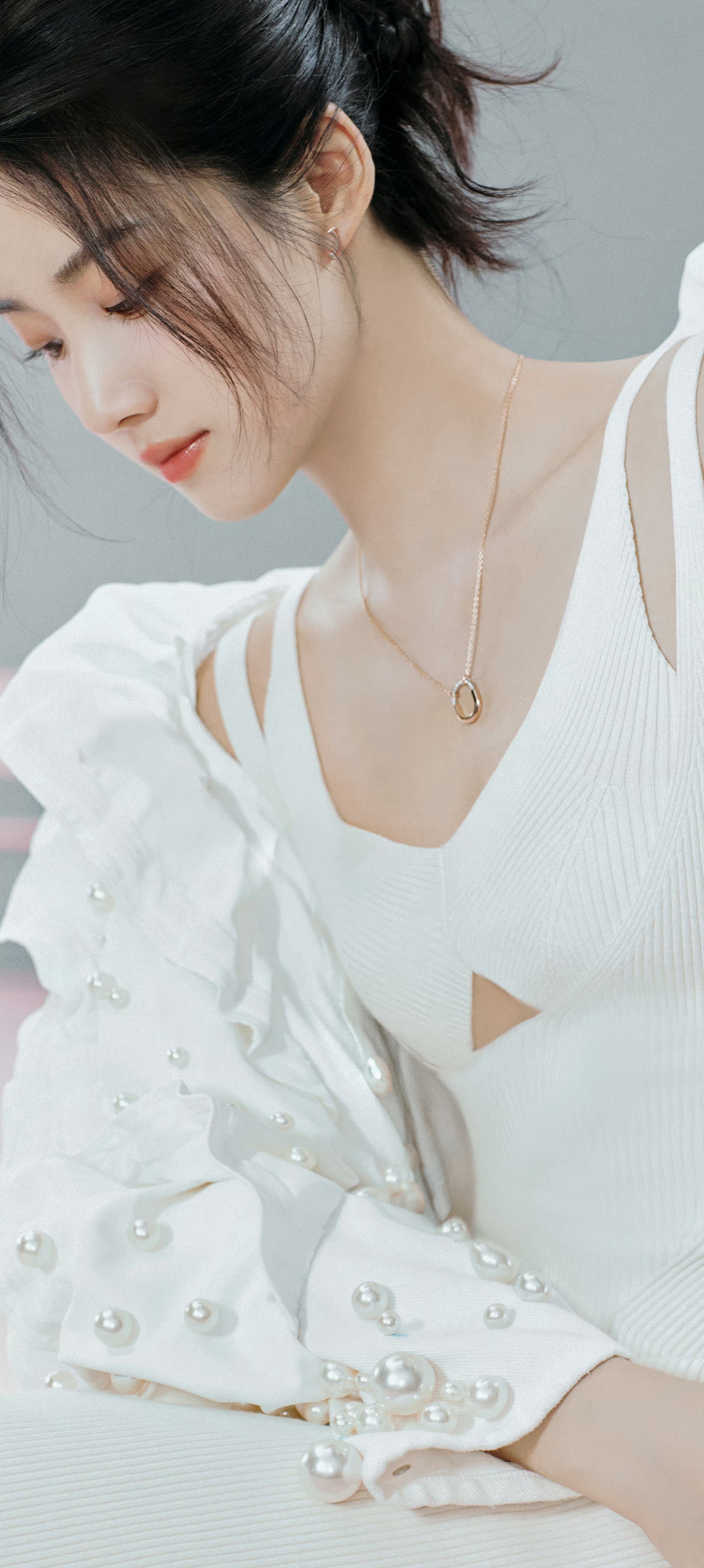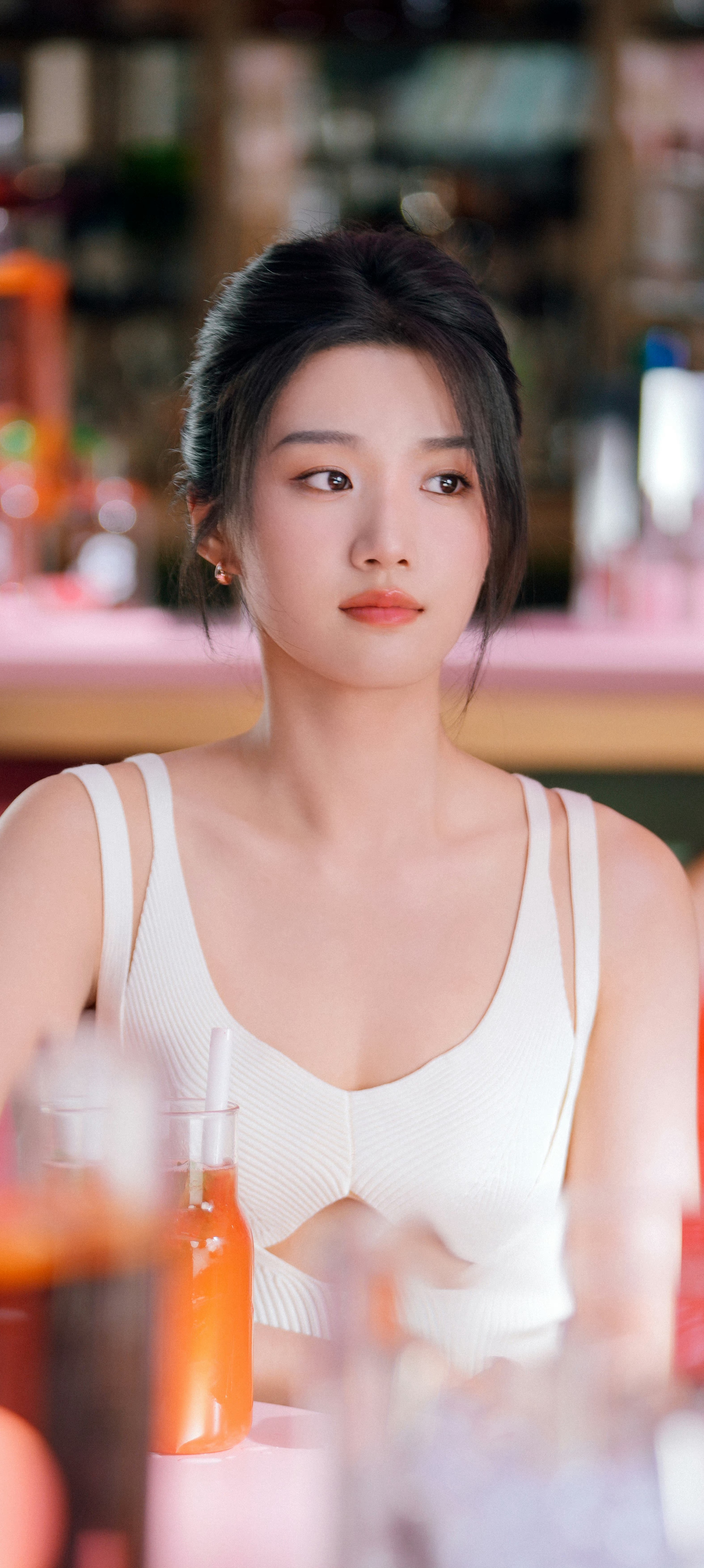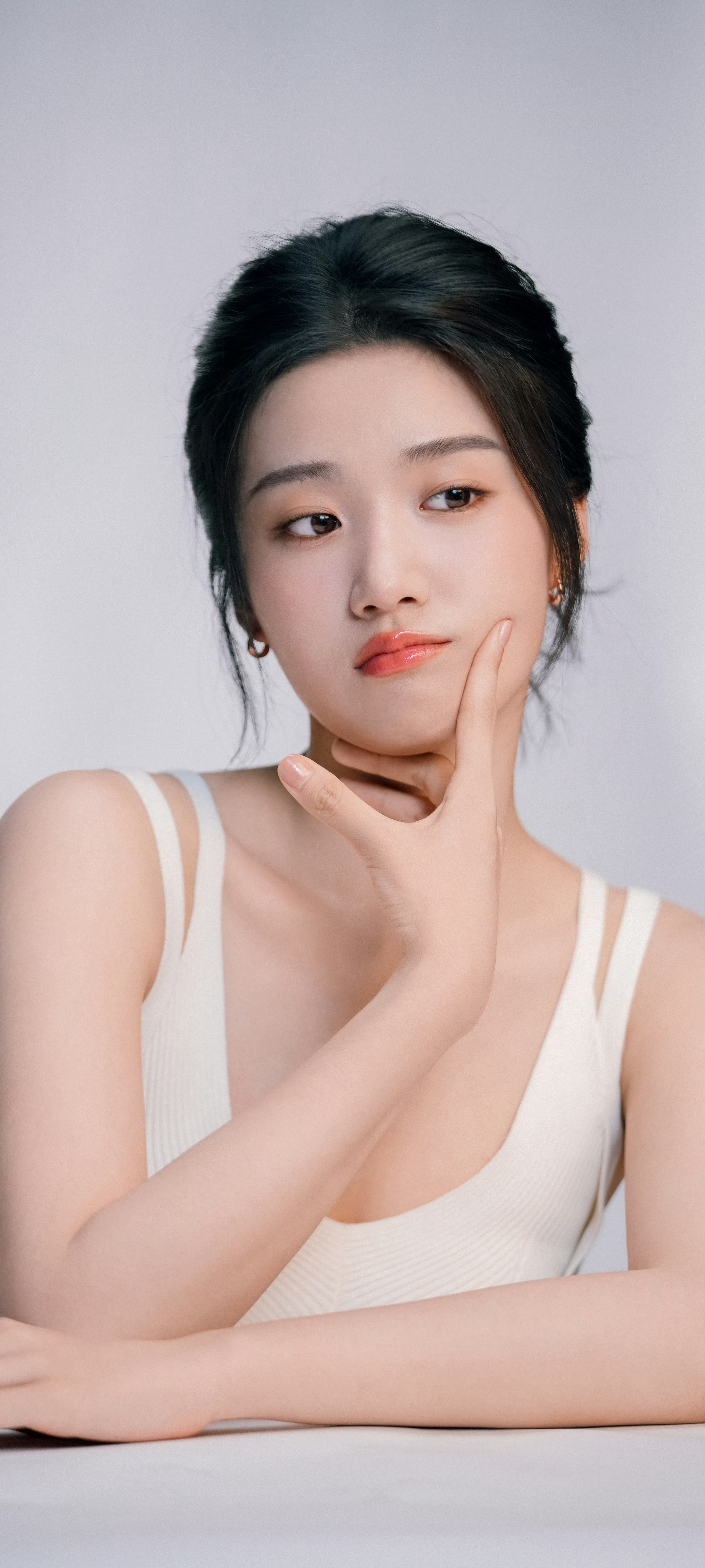 卢昱晓,双肩带白裙造型,治愈甜美。卢昱晓